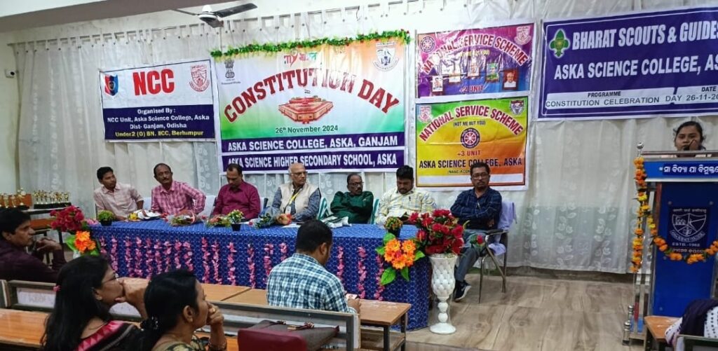 ଆସିକା ଵିଜ୍ଞାନ ମହାବିଦ୍ୟାଳୟ ଠାରେ ସମର ଶିକ୍ଷାର୍ଥୀ ବାହିନୀ, ଭାରତ ସ୍କାଉଟ୍ସ ଏଣ୍ଡ ଗାଇଡସ, ଜାତୀୟ ସେବା ଯୋଜନା ଓ ଯୁବ ରେଡ଼କ୍ରସ ର ସ୍ବେଛାସେବୀ, ମହାବିଦ୍ୟାଳୟ ର ଅନ୍ୟାନ୍ୟ ଛାତ୍ର ଛାତ୍ରୀ ଓ ସମସ୍ତ କର୍ମଚାରୀ ଙ୍କ ସହଯୋଗ ରେ ସମ୍ବିଧାନ ଦିବସ ଟିକୁ ମହା ଆଡମ୍ବରରେ ପାଳନ କରାଯାଇଛି. ଏହି କାର୍ଯ୍ୟକ୍ରମ ରେ ଅଧ୍ୟକ୍ଷ ଡ଼ଃ ଜୀବାନନ୍ଦ ତ୍ରିପାଠୀ ସଭାପତିତ୍ୱ କରିଥିବା ବେଳେ ମୁଖ୍ୟ ଅତିଥି ଭାବେ ମହାବିଦ୍ୟାଳୟ ର ପରିଚାଳନା କମିଟି ର ସଭାପତି ପ୍ରଫେସର ପ୍ରସନ୍ନ କୁମାର ପ୍ରଧାନ, ସନମାନୀତ ଅତିଥି ଭାବେ ପ୍ରଶାସନିକ ଅଧିକାରୀ ଡ଼ଃ. ଶଙ୍କର ପ୍ରସାଦ ଅଧିକାରୀ, ମୁଖ୍ୟ ବକ୍ତା ଭାବେ ରାଜନୀତି ବିଭାଗର ମୁଖ୍ୟ ଡ଼ଃ. ଅଭୟ କେଶରୀ ପରିଛା ପଟନାୟକ, ଏନ ଏସ ଏସ ଅଧିକାରୀ ପ୍ରଫେସର ଚନ୍ଦନ ମାରାଣ୍ଡି, ୱାଇ ଆର ସି ଅଧିକାରୀ ଡ଼ଃ. ଅଜିତ କୁମାର ମୁନୀ ଓ ସ୍କାଉଟ ଲିଡର ପ୍ରଫେସର ସରୋଜ କୁମାର ପଣ୍ଡା ମଞ୍ଚାସିନ ଥିଲେ. ଆଜିର ମୁଖ୍ୟ ଆଲୋଚ୍ୟ ବିଷୟ ଥିଲା ଭାରତୀୟ ସମ୍ବିଧାନ ଉପରେ ଆଲୋଚନା ଓ ପର୍ଯ୍ୟାଲୋଚନା. ସଭାକାର୍ଯ୍ୟ ପ୍ରାରମ୍ଭ ରେ ପ୍ରଫେସର ମାରାଣ୍ଡି ଅତିଥି ନିମନ୍ତ୍ରଣ ସହ ପରିଚୟ ପ୍ରଦାନ କରିଥିଲେ ଓ ଛାତ୍ରୀ ମାନଙ୍କ ଦ୍ୱାରା ପୁଷ୍ପଗୁଛ ପ୍ରଦାନ ଓ ଉପଢୌକନ ଦେଇ ସନମାନୀତ କରାଯାଇଥିଲା. ପରେ ପରେ ଠାକୁର ଙ୍କୁ ପୁଷ୍ପମାଲ୍ୟ ଦେଇ ପ୍ରଦୀପ ପ୍ରଜ୍ବଳନ କରିବା ସହ ବେଦପାଠ କରାଯାଇଥିଲା. ପରେ ସଭାପତିଙ୍କ ଦ୍ୱାରା ସଭା କାର୍ଯ୍ୟ ଆରମ୍ଭ ହୋଇଥିଲା.