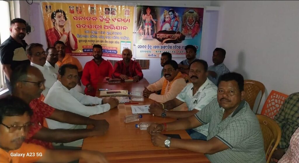ଆଜି ବୈଠକରେ ଆସନ୍ତା ୨୨ ତାରିଖରେ ଭୁବନେଶ୍ୱରରେ ହେବାକୁ ଯାଉଥିବା ବାଗେଶ୍ୱର ଧାମ ଦ୍ୱାରା ଆୟୋଜିତ “ସନାତନ ହିନ୍ଦୁ ଏକତା ପଦଯାତ୍ରା” ରେ ଅଧିକ ସଂଖ୍ୟାରେ ଯୋଗ ଦେବାକୁ ଆହ୍ୱାନ ଦିଆଯାଇଥିଲା।