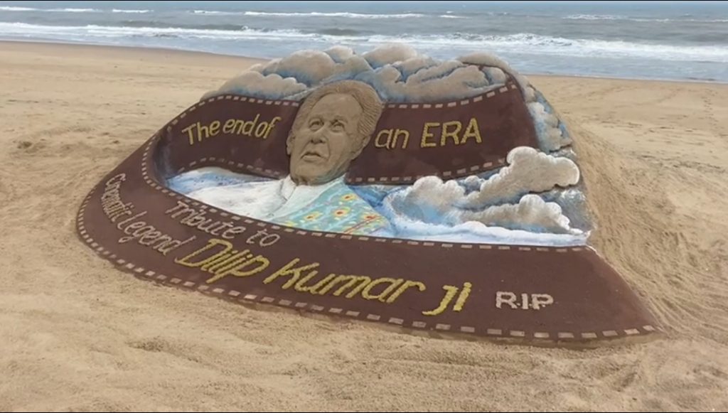ସବୁଦିନ ପାଇଁ ନୀରବିଗଲେ ବଲିଉଡର ସୁପରଷ୍ଟାର ଦିଲ୍ଲୀପ କୁମାର । ଆଜି ସକାଳ ୭.୩୦ ମିନିଟରେ ଦିଲୀପ ନେଇଛନ୍ତି ଶେଷ ନିଶ୍ବାସ । ୯୮ ବର୍ଷ ବୟସରେ ମୁମ୍ବାଇର ହିନ୍ଦୁଜା ହସ୍ପିଟାଲରେ ତାଙ୍କର ମୃତ୍ୟୁ ହୋଇଛି ।ତାଙ୍କ ମୃତ୍ୟୁରେ ସାରା ବଲିଉଡ ଜଗତରେ ଶୋକର ଛାୟା ଖେଳିଯାଇଛି। ଏହି ଅବସରରେ ଆର୍ନ୍ତଜାତୀୟ ବାଲୁକାଶିଳ୍ପୀ ପଦ୍ମଶ୍ରୀ ସୁଦର୍ଶନ ପଟ୍ଟନାୟକ ବାଲୁକାକଳା ଜରିଆରେ ଭେଟେରାନ୍ ଆକ୍ଟର ଦୀଲିପ କୁମାରଙ୍କୁ ଶ୍ରଦ୍ଧାଞ୍ଜଳି ଞ୍ୟପନ କରିଛନ୍ତି। ଦୀଲିପ କୁମାରଙ୍କ ବିୟୋଗ ସାରା ବଲିଉଡ୍ ଜଗତ ପାଇଁ ଅପୂରଣୀୟ କ୍ଷତି ହୋଇଥିବା ବେଳେ ବଲିଉଡରେ ଗୋଟିଏ ଯୁଗର ସମାପ୍ତି ଘଟିଲା ବୋଲି ସୁଦର୍ଶନ ନିଜ ବାଲୁକାକଳାରେ ଉପସ୍ଥାପନ କରିଛନ୍ତି।
