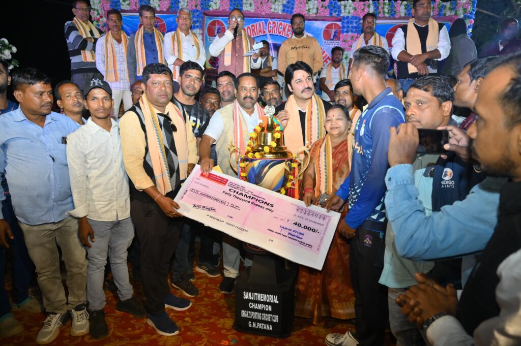 ସଞ୍ଜିତ ମେମୋରିଆଲ କ୍ରିକେଟ ଟୁର୍ଣ୍ଣାମେଣ୍ଟ:ଟିସିସି,ଭୁବନେଶ୍ୱର ଚମ୍ପିୟାନ.ବଡ଼ଚଣା :ଯାଜପୁର ଜିଲ୍ଲା ବଡ଼ଚଣା ବ୍ଲକ ଅନ୍ତର୍ଗତ ଦର୍ପଣ ପଞ୍ଚାୟତ ଗୁଲଜାନଗରପାଟଣା ସ୍ଥିତ ମା ତାରିଣୀ କ୍ରିକେଟ କ୍ଲବ ଆନୁକୂଲ୍ୟରେ ଅନୁଷ୍ଠିତ ଅଷ୍ଟମ ବାର୍ଷିକ ସଞ୍ଜିତ ମେମୋରିଆଲ କ୍ରିକେଟ ଟୁର୍ଣ୍ଣାମେଣ୍ଟର ଆଜି ଫାଇନାଲ ମ୍ୟାଚ ଟିସିସି,ଭୁବନେଶ୍ୱର ଓ ୟୁନିୟନ ସ୍ପୋଟିଂ,କଟକ ମଧ୍ୟ୍ୟରେ ଅନୁଷ୍ଠିତ ହୋଇଥିଲା।ଏଥିରେ ୟୁନିଅନ ସ୍ପୋର୍ଟିଂ କ୍ଲବ, କଟକକୁ ୯ ୱିକେଟରେ ପରାସ୍ତ କରି ଟିସିସି,ଭୁବନେଶ୍ୱର ଚମ୍ପିୟାନ ହୋଇଛି।ଆଜିର ଏହି ଫାଇନାଲ ମ୍ୟାଚରେ ୟୁନିଅନ ସ୍ପୋଟିଂ, କଟକ ଟସ ଜିତି ପ୍ରଥମେ ନିର୍ଦ୍ଧାରିତ ୨୫ ଓଭର ବିଶିଷ୍ଟ ଖେଳରେ ବ୍ୟାଟିଂ ଆରମ୍ଭ କରି ସମସ୍ତ ୱେକେଟ୍ ହରାଇ ୧୭୧ ରନ ସଂଗ୍ରହ କରିଥିଲା।ଦଳ ପକ୍ଷରୁ ଗଣେଶ ୪୮ ରନ (୩୮ବଲ),କାମେଶ୍ୱର ବାରିକ ୪୪ ରନ(୩୬ବଲ) କରିଥିବା ବେଳେ ଭୁବନେଶ୍ୱର ତରଫରୁ କାଳିଆ ସାହୁ ୩ ଓଭର ବୋଲିଂ କରି ୧୯ ରନ ଦେଇ ୩ ୱିକେଟ ଓ ରାଜେଶ କୁମାର ୪.୧ ଓଭର ବୋଲିଂ କରି ୧୬ ରନ ଦେଇ ୨ ୱିକେଟ ଦଖଲ କରିଥିଲେ।ଜବାବରେ ଭୁବନେଶ୍ୱର ୨୦.୨ ଓଭର ବ୍ୟାଟିଂ କରି ୧ ୱିକେଟ୍ ହରାଇ ୧୭୨ ରନ କରି ବିଜୟ ହୋଇଥିଲା।ଦଳ ପକ୍ଷରୁ ସତ୍ୟଜିତ ସାବତ ୧୦୦ ରନ (୬୬ବଲ) ଓ ଅନୁରାଗ ଷଡ଼ଙ୍ଗୀ ୫୮ ରନ (୪୬ବଲ) ସଂଗ୍ରହ କରିଥିବା ବେଳେ କଟକର ଶୁଭମ ପ୍ରିୟଦର୍ଶୀ ୫ ଓଭର ବୋଲିଂ କରି ୪୨ ରନ ଦେଇ ୧ ୱିକେଟ୍ ଓ ସମ୍ପଦ କୁମାର ଦାସ ୫ ଓଭର ବୋଲିଂ କରି ୧୭ ରନ ଦେଇଥିଲେ।ଖେଳକୁ ଓସିଏ ଅମ୍ପାୟର ବିଭୁ ପ୍ରସାଦ ଚୌଧୁରୀ ଓ ସୁମେନ୍ଦ୍ର ପାତ୍ର ପରିଚାଳନା କରିଥିଲେ।ଚିରଞ୍ଜିବ୍ ବଳ(ଓସିଏ)ସ୍କୋରର ଦାୟିତ୍ବ ତୁଲାଇଥିଲେ।ସଞ୍ଜିତ ମେମୋରିଆଲ କ୍ରିକେଟ ଟୁର୍ଣ୍ଣାମେଣ୍ଟ ତରଫରୁ ସଭାପତି ଦିଲ୍ଲୀପ କୁମାର ସାମଲଙ୍କ ଅଧ୍ୟକ୍ଷତାରେ ଅନୁଷ୍ଠିତ ପୁରଷ୍କାର ବିତରଣ ଉତ୍ସବରେ ମୁଖ୍ୟ ଅତିଥି ଭାବେ କୋରେଇ ବିଧାୟକ ଆକାଶ ଦାସ ନାୟକ,ବିଶିଷ୍ଟ ଅତିଥି ଭାବେ ବଡ଼ଚଣା ବିଧାୟକ ଅମର କୁମାର ନାୟକ ଓ ସମ୍ମାନିତ ଅତିଥି ଭାବେ ବଡ଼ଚଣା ପଞ୍ଚାୟତ ସମିତି ଅଧ୍ୟକ୍ଷା ମିନତୀ ସେନାପତି,ଉପାଧ୍ୟକ୍ଷ ବିଭାସ ଚନ୍ଦ୍ର ନନ୍ଦ, ସରପଞ୍ଚ ରଞନ କୁମାର ଦାଶ, ବିଜେପି ଜିଲ୍ଲା ସମ୍ପାଦକ ପ୍ରମୋଦ କୁମାର ଜେନା ପ୍ରମୁଖ ଯୋଗଦେଇ ଚାମ୍ପିୟନ ଓ ରନର୍ସଅପ ଦଳକୁ ଟ୍ରଫି ପ୍ରଦାନ କରିବା ସହ ସତ୍ୟଜିତ ସାବତ( ମ୍ୟାନ ଅଫ ଦ ମ୍ୟାଚ),ଶୁଶିଲ କୁମାର ବାରିକ(ମ୍ୟାନ ଅଫ ଦ ସିରିଜ),କ୍ଷମା ସାଗର ବଳ(ବେଷ୍ଟ ବ୍ୟାଟସ ମ୍ୟାନ),ବାସୁକିନାଥ ତିୱାରୀ(ବେଷ୍ଟ ବୋଲର) ଓ ବିନୟ ପାଇକରାୟଙ୍କୁ(ବେଷ୍ଟ ଫିଲଡର) ଟ୍ରଫି ଓ ପୁରସ୍କାର ପ୍ରଦାନ କରିଥିଲେ।