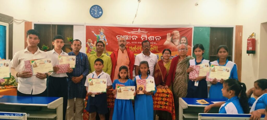 ଗୁରୁକୁଳମ୍, ପୁରୀ ପକ୍ଷରୁ ୧୬ ତାରିଖ ରବିବାର ବ୍ଲକସ୍ତରୀୟ ଗୀତା ଆବୃତ୍ତି ପ୍ରତିଯୋଗିତା ଅନୁଷ୍ଠିତ ହୋଇଯାଇଛି। ଏହି କାର୍ଯ୍ୟକ୍ରମରେ ସତ୍ୟବାଦୀ ବ୍ଲକ୍ ରେ ଥିବା ବିଦ୍ୟାଳୟ ର ଛାତ୍ରଛାତ୍ରୀ ଅଂଶ ଗ୍ରହଣ କରିଥିଲେ। ଏହି କାର୍ଯ୍ୟକ୍ରମର ପ୍ରାରମ୍ଭରେ ହରିହରାନନ୍ଦ ଗୁରୁକୁଳମ୍ ର ସନ୍ୟାସୀ, ବିଦ୍ୟାଳୟର ଶିକ୍ଷକ ଶିକ୍ଷୟିତ୍ରୀ ଏବଂ ଅତିଥିମାନଙ୍କଦ୍ୱାରା ଭଗବାନ୍ ଶ୍ରୀ ଗଣେଶ ନିକଟରେ ପୁଷ୍ପ ପ୍ରଦାନ ପୂର୍ବକ ଶୁଭାରମ୍ଭ କରାଯାଇଥିଲା। ଏହି ମହନୀୟ କାର୍ଯ୍ୟକ୍ରମକୁ ସତ୍ୟବାଦୀ ବିଦ୍ୟାଳୟ ର ସଂସ୍କୃତ ଶିକ୍ଷୟିତ୍ରୀ କୃଷ୍ଣପ୍ରିୟା ଦାଶ ଉଦ୍ଘାଟନ କରିଥିଲେ। ଓଡ଼ିଶାରେ ଶ୍ରୀମଦ୍ଭଗବଦ୍ ଗୀତାର ମହତ୍ତ୍ୱକୁ ବୁଝାଇବା ପାଇଁ ପ୍ରଜ୍ଞାନ ମିଶନ ତରଫରୁ ଛାତ୍ରଛାତ୍ରୀମାନଙ୍କ ମଧ୍ୟରେ ଗୀତା ଅଧ୍ୟୟନ ପାଇଁ ଏହି କାର୍ଯ୍ୟକ୍ରମ ଆୟୋଜନ କରାଯାଉଥିବା ହେତୁ ବିଚାରକ ମାନେ ପ୍ରଜ୍ଞାନ ମିଶନକୁ ସାଧୁବାଦ ଜଣାଇବା ସହିତ ଓଡ଼ିଶାର ସମସ୍ତ ଛାତ୍ରଛାତ୍ରୀମାନେ ଗୀତା ଅଧ୍ୟୟନ କରିବାକୁ ଉପଦେଶ ଦେଇଥିଲେ। କାର୍ଯ୍ୟକ୍ରମ ଶେଷରେ ପ୍ରଥମ, ଦ୍ବିତୀୟ ତୃତୀୟ ସ୍ଥାନ ଅଧିକାର କରିଥିବା ଛାତ୍ରଛାତ୍ରୀମାନଙ୍କୁ ପୁରସ୍କୃତ କରାଯାଇଛି। ଏହି ଛାତ୍ରଛାତ୍ରୀମାନେ ଜିଲ୍ଲାସ୍ତରକୁ ଯିବେ ସେଥିରେ କୃତକାର୍ଯ୍ୟ ହୋଇ ରାଜ୍ୟ ସ୍ତରରେ କୃତକାର୍ଯ୍ୟ ହୋଇଥିବା ଛାତ୍ରଛାତ୍ରୀମାନଙ୍କୁ ଏକ ବର୍ଷ ପର୍ଯ୍ୟନ୍ତ ପ୍ରଜ୍ଞାନ ମିଶନ ପକ୍ଷରୁ ଛାତ୍ରବୃତ୍ତି ପ୍ରଦାନ କରାଯିବ। ଏହି କାର୍ଯ୍ୟକ୍ରମ ଶ୍ରୀ ସଦାଶିବ ପରିସରର ବ୍ୟାକରଣ ବିଭାଗର ଅଧ୍ୟାପକ ଡ. ଅଜୟାନନ୍ଦ ସାହୁ ତଥା ସତ୍ୟବାଦୀ ଉଚ୍ଚବିଦ୍ୟାଳୟ ର ସଂସ୍କୃତ ଶିକ୍ଷୟିତ୍ରୀ କୃଷ୍ଣପ୍ରିୟା ଦାଶ ଙ୍କ ତତ୍ତ୍ବାବଧାନରେ ଅନୁଷ୍ଠିତ ହୋଇଥିଲା। କାର୍ଯ୍ୟକ୍ରମକୁ ସଦାଶିବ ପରିସରର ଶିକ୍ଷାଶାସ୍ତ୍ର ବିଭାଗର ଅଧ୍ୟାପକ ଡ. ମହେଶ କୁମାର ପାଣିଗ୍ରାହୀ ସଞ୍ଚାଳନ କରିଥିଲେ। କାର୍ଯ୍ୟକ୍ରମ ଶେଷରେ ତିନୋଟି ବିଭାଗରେ ୮ ଜଣ ପ୍ରତିଯୋଗୀ ପୁରସ୍କାର ଓ ପ୍ରମାଣ ପତ୍ର ଦିଆଯାଇଥିଲା।ସେମାନେ ହେଲେ କ ବିଭାଗ – ପ୍ରଥମ – ସ୍ନେହାମୟୀ ମହାନ୍ତି , ଗୋପାଳପୁରପାଟଣା ପ୍ରାଥମିକ ବିଦ୍ୟାଳୟ ଦ୍ବିତୀୟ – ସ୍ୱୟଂ ପ୍ରକାଶ ରଥ,ସରସ୍ଵତୀ ଶିଶୁ ବିଦ୍ୟା ମନ୍ଦିର ଖ ବିଭାଗ – ପ୍ରଥମ – ଅଭିପ୍ସା ପ୍ରଧାନ, ସରସ୍ଵତୀ ଶିଶୁ ବିଦ୍ୟା ମନ୍ଦିର ଦ୍ବିତୀୟ – ଶୁଭଶ୍ରୀ ,ସତ୍ୟବାଦୀ ଉଚ୍ଚବିଦ୍ୟାଳୟତୃତୀୟ – ସାଇସ୍ମରିକା ନାୟକ, ସତ୍ୟବାଦୀ ଉଚ୍ଚବିଦ୍ୟାଳୟ ଗ ବିଭାଗ – ପ୍ରଥମ -ଓମ୍ ପ୍ରକାଶ ଦାଶ , ସତ୍ୟବାଦୀ ଉଚ୍ଚବିଦ୍ୟାଳୟ ଦ୍ବିତୀୟ -ଅଭିଜିତ୍ ଦାଶ, ସତ୍ୟବାଦୀ ଉଚ୍ଚବିଦ୍ୟାଳୟ ମହାରଣା, ସତ୍ୟବାଦୀ ଉଚ୍ଚବିଦ୍ୟାଳୟତୃତୀୟ – ଅମଳ ଦାଶ, ସତ୍ୟବାଦୀ ଉଚ୍ଚବିଦ୍ୟାଳୟ ।ପରିଶେଷରେ ପ୍ରଜ୍ଞାନ ମିଶନ ତରଫରୁ ପ୍ରଫେସର ସୁଜାତା ମିଶ୍ର ଆଗାମୀ ୨୦୨୬ ଫେବୃୟାରୀ ମାସ ରେ ହେବାକୁ ଥିବା ଗୀତା ଜ୍ଞାନ ପରୀକ୍ଷା ପ୍ରତିଯୋଗିତା ବିଷୟରେ ସୂଚନା ପ୍ରଦାନ କରିଥିଲେ । ଶେଷରେ ପ୍ରଫେସର ଡ. ମହେଶ କୁ . ପାଣିଗ୍ରାହୀ ସମସ୍ତକୁ ଗୀତା ପଠନ ପାଠନ କରିବା ନିମନ୍ତେ ପ୍ରେରିତ କରିବା ସହିତ ଉପସ୍ଥିତ ଥିବା ସମସ୍ତ ଶିକ୍ଷକ ଶିକ୍ଷୟତ୍ରୀ ଓ ଅଭିଭାବକମାନଙ୍କୁ କୃତଜ୍ଞତା ଜ୍ଞାପନ ପୂର୍ବକ ଧନ୍ୟବାଦ ଅର୍ପଣ କରି ଶାନ୍ତିମନ୍ତ୍ର ଦ୍ଵାରା କାର୍ଯ୍ୟକ୍ରମର ସମାପନ କରାଇଥିଲେ।