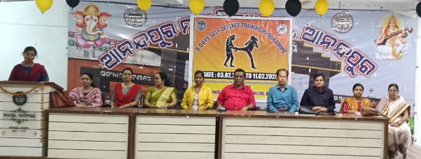 ତା.୦୩.୦୨୦୨୦୨୬ରିଖ ଦିନ ମହାବିଦ୍ୟାଳୟର ଅଧ୍ୟକ୍ଷ ଡ. ନାରାୟଣ ମିଶ୍ରଙ୍କ ସଭାପତିତ୍ବରେ ଅନୁଷ୍ଠିତ ହୋଇଯାଇଛି। ଏହି କାର୍ଯ୍ୟକ୍ରମଟିକୁ ଆତ୍ମରକ୍ଷା ସମନ୍ଵୟକାରୀ ମଧୁସ୍ମିତା ସାହୁ ସଂଯୋଜନା କରିଥିଲେ। ସମ୍ମାନିତ ଅତିଥି ଭାବେ ମହାବିଦ୍ୟାଳୟର ଆକାଉଣ୍ଟ ବର୍ସାର ଡ. ନିମାଇଁ ଚରଣ ରାଉତ, ଏକାଡେମିକ୍ ବର୍ସାର ଶକ୍ତିପ୍ରସାଦ ମହାପାତ୍ର, ଆଡମିନଷ୍ଟ୍ରେଟିଭ୍ ବର୍ସାର ପ୍ରଫୁଲ୍ଲ କୁମାର ପଣ୍ଡା, ଇଂରାଜୀ ବିଭାଗୀୟ ମୁଖ୍ୟ ଦୁର୍ଗା ଶଙ୍କର ପରିଡ଼ା, ଓଡ଼ିଆ ସାହିତ୍ୟ ବିଭାଗୀୟ ମୁଖ୍ୟ ଶ୍ରୀ ସାହୁ, ଇତିହାସ ବିଭାଗୀୟ ମୁଖ୍ୟ ସଂଘମିତ୍ରା ରାଉତ, ଅଧ୍ୟାପିକା ନିହାରିକା ପାତ୍ର ପ୍ରମୁଖ ଉପସ୍ଥିତ ରହି ଆତ୍ମରକ୍ଷା ତାଲିମ ଶିବିରର ଉଦ୍ଦେଶ୍ୟ, ଆବଶ୍ୟକତା, ଏବଂ ତାର ପ୍ରୟୋଗ ବିଷୟରେ ଛାତ୍ରୀ ମାନଙ୍କୁ ବୁଝାଇ କହିଥିଲେ।