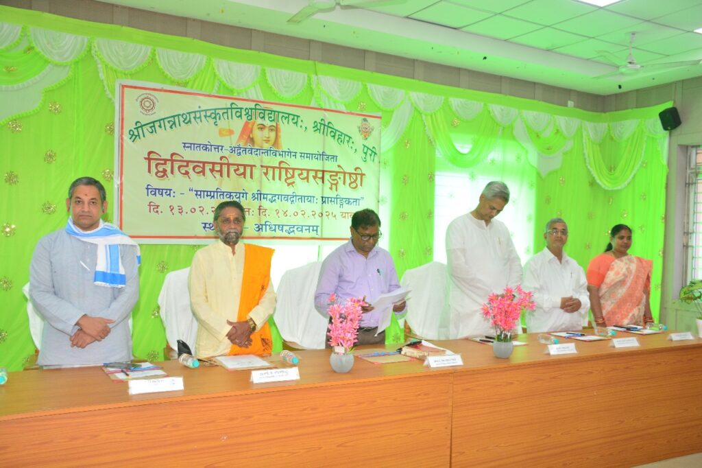ଶ୍ରୀ ଜଗନ୍ନାଥ ସଂସ୍କୃତ ବିଶ୍ଵବିଦ୍ୟାଳୟ ଅଦ୍ଵୈତ ବେଦାନ୍ତ ବିଭାଗ ପକ୍ଷରୁ ଦିନ ଦ୍ୱୟ ବ୍ୟାପି ରାଷ୍ଟ୍ରୀୟ ଚର୍ଚ୍ଚା ସତ୍ର ଉଦଯାପିତ ହୋଇଯାଇଛି | ଏହିସଂଗୋଷ୍ଠୀରେ ସମୁଦ୍ଧଘାଟକ ରୂପରେ ଯୋଗଦେଇ ବିଶ୍ଵବିଦ୍ୟାଳୟ ର ମାନନୀୟ କୁଳପତି ପ୍ରଫେସର ଡ. ପ୍ରସନ୍ନ କୁମାର ସ୍ଵାଇଁ ମହୋଦୟ ଶ୍ରୀମଦ୍ ଭଗବତ୍ ଗୀତାର ମହତ୍ତ୍ୱ ସମ୍ପର୍କରେ ଭାଷଣ ଉପସ୍ଥାପନା କରିଥିଲେ l ମୁଖ୍ୟ ଅତିଥି ଭାବରେ ସୁଦୂର ତିରୁପତି ନଗର ରୁ ଆସିଥିବା ପ୍ରଫେସର୍ କେ ଗଣପତି ଭଟ୍ଟ ମୁଖ୍ୟ ବକ୍ତା ଭାବରେ ଜବାହରଲାଲ ନେହେରୁ ବିଶ୍ୱବିଦ୍ୟାଳୟ ଦିଲ୍ଲୀ ରୁ ପ୍ରଫେସର୍ ରାମନାଥ ଝା ସମ୍ମାନୀତ ଅତିଥି ଭାବରେ ପ୍ରଫେସର୍ ପ୍ରଭାତ ରଞ୍ଜନ ମହାପାତ୍ର ମହୋଦୟଯୋଗଦେଇ ଥିଲେ l ଉଦଘାଟନ ସତ୍ର ରେ ଅଧକ୍ଷ ଭାବେରେ ପ୍ରଫେସର୍ ଦତ୍ତାତ୍ରୟ ମୂର୍ତ୍ତି ଭାଷଣ ପ୍ରଦାନ କରିଥିଲେ l ଏହି କାର୍ଯ୍ୟକର୍ମର ସମାପନ ସତ୍ର ରେ ଶ୍ରୀ ସଦାଶିବ କେନ୍ଦ୍ରୀୟ ସଂସ୍କୃତ ବିଶ୍ବିଦ୍ୟାଳୟର ସର୍ବଦର୍ଶନ ବିଭାଗର ଅଧକ୍ଷ ପ୍ରଫେସର୍ ଦାସ ଗୌରପ୍ରିୟା ମୁଖ୍ୟବକ୍ତା ଭାବେରେ, ଶ୍ରୀ ନିଗମା ନନ୍ଦ ସାରସ୍ବତ ଆଶ୍ରମ ର ଅଧକ୍ଷ ସ୍ବାମୀ ଶଙ୍କରାନନ୍ଦ ସରସ୍ୱତୀ ମୁଖ୍ୟ ଅତିଥି ଭାବେରେ, ବିଶ୍ବିଦ୍ୟାଳୟର ସ୍ନାତକୋତ୍ତ୍ରର ପରିଷଦ ର ଅଧକ୍ଷ ପ୍ରଫେସର୍ ଦତ୍ତାତ୍ରୟ ମୂର୍ତ୍ତି ଅଧକ୍ଷତା କରିଥିଲେ l