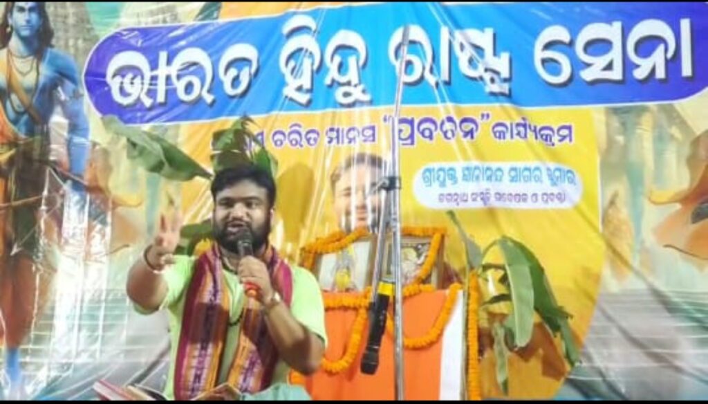 ପବିତ୍ର ଶ୍ରୀରାମ ନବମୀ ଉପଲକ୍ଷେ ମହାବୀର ଭକ୍ତ ବୃନ୍ଦ, ଭାରତ ହିନ୍ଦୁ ରାଷ୍ଟ୍ର ସେନା, ଚାନ୍ଦମା, ଯାଜପୁର ରୋଡ଼ ତରଫରୁ ଶ୍ରୀରାମ ଚରିତ ମାନସ “ପ୍ରବଚନ’ କାର୍ଯ୍ୟକ୍ରମ ଶ୍ରୀକ୍ଷେତ୍ର ରୁ ଆସିଥିବା ଜଗନ୍ନାଥ ସଂସ୍କୃତି ଗବେଷକ ଓ ପ୍ରବକ୍ତା ଶ୍ରୀଯୁକ୍ତ ଜ୍ଞାନାନନ୍ଦ ସାଗର କୁମାର ଙ୍କ ମଧୁର ମୁଖରୁ lଯାଜପୁର ବ୍ୟାସନଗର ରୁ ଜ୍ୟୋତି ପ୍ରକାଶ ଭୂୟାଁ ଙ୍କ ରିପୋର୍ଟ