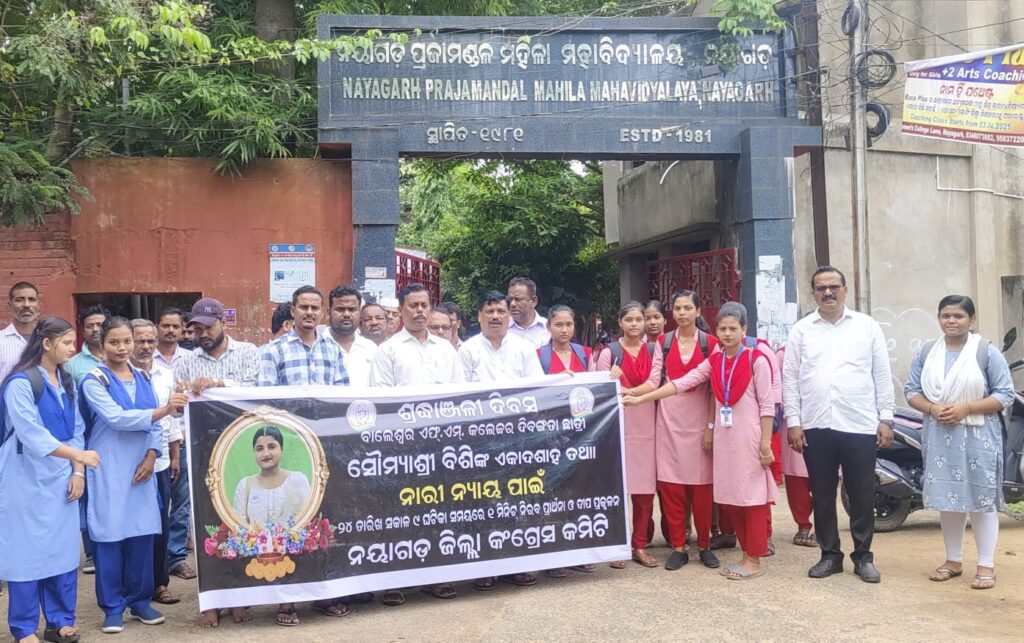 ନୟାଗଡ ଜିଲ୍ଲା କଂଗ୍ରେସ କମିଟି ପକ୍ଷରୁ ସୌମ୍ୟାଶ୍ରୀ ଙ୍କ ଏକାଦଶାହ ରେ ନିରବ ପାର୍ଥନା ଓ ଦୀପଦାନ