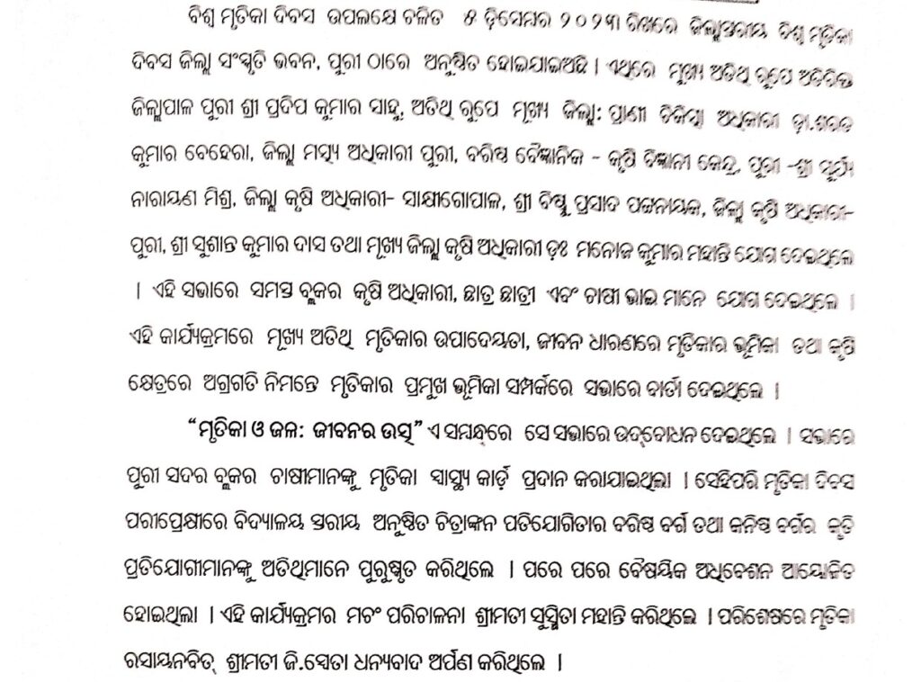 ଅନ୍ୟାନ୍ୟ ପୁରୀ ରାଜ୍ୟ ଜିଲ୍ଲା ମୃତିକା ଦିବସ ପାଳନ 2023 Teerthkhetra Views: 103 Tags: headlines, odishakhabar, odishanews Continue Reading Previous ଦିବ୍ୟାଙ୍ଗ ବ୍ୟକ୍ତିଙ୍କୁ ଚିହ୍ନଟ କରିବା ସହିତ ତିନି ଚକିଆ ସାଇକେଲ ଓ ଉପକରଣ ବଣ୍ଟନ କାର୍ଯ୍ୟକ୍ରମNext ବେଙ୍ଗଳା ମେସିନ ତଳେ ଚାପି ହୋଇ ମୃତ୍ୟୁ More Stories ଅନ୍ୟାନ୍ୟ ସିବିଏସଇ ପରୀକ୍ଷାରେ କେନ୍ଦୁଝର ଜିଲ୍ଲା ଓଡ଼ିଶା ଆଦର୍ଶ ବିଦ୍ୟାଳୟ ସମୂହର ଟପ୍ପର ହେଲେ ଦିବ୍ଯାଭାରତୀ ପଲେଇ Teerthkhetra ଅନ୍ୟାନ୍ୟ ଲୋକସେବା ଭବନରୁ ଏସି ଚୋରି Teerthkhetra ଅନ୍ୟାନ୍ୟ ଏନ୍କାଉଣ୍ଟରରେ ଟଳିଲେ ୪ ନକ୍ସଲ Teerthkhetra Leave a Reply Cancel replyYour email address will not be published. Required fields are marked *Comment * Name * Email * Website Save my name, email, and website in this browser for the next time I comment.