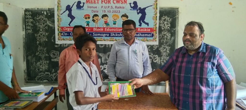 କନ୍ଧମାଳ ଜିଲ୍ଲା ରାଇକିଆ ବ୍ଳକ ଗୋଷ୍ଟି ଶିକ୍ଷା ଅଧିକାରୀ ଙ୍କ କାର୍ଯ୍ୟଳୟ ଠାରେ ଦିବ୍ୟାଙ୍ଗ ଛାତ୍ର ଛାତ୍ରୀ ମାନଙ୍କ ନିମନ୍ତେ ଏକI କାର୍ଯ୍ୟକ୍ରମ ଅନୁଷ୍ଠିତ ହୋଇଛି। ଏହି କାର୍ଯ୍ୟକ୍ରମ ରେ ରାଇକିଆ ବ୍ଳକ ର ବିଭିନ୍ନ ସ୍କୁଲରୁ ଆସିଥିବା 80ଜଣ ଦିବ୍ୟାଙ୍ଗ ଛାତ୍ର ଛାତ୍ରୀଙ୍କୁ ନେଇ ବିଭିନ୍ନ ତଥା-ଗୀତ, ନାଚ, କୁଇଜ ଓ ମ୍ୟୁଜିକଚେୟାର ଇତ୍ୟାଦି କାର୍ଯ୍ୟକ୍ରମ ଅନୁଷ୍ଠିତ ହୋଇଥିଲା ଏବଂ କୃତିତ୍ୱ ହାସଲ କରିଥିବା ଛାତ୍ରଛାତ୍ରୀଙ୍କୁ B.I.O-ଶ୍ରଯୁକ୍ତ ହାଡ଼ିବନ୍ଧୁ ବେହେରା E.B.O କମ B.R.C.C ଶ୍ରୀ ସାରଥୀ କହଁର ଓ ଗୋଷ୍ଠୀ ସମ୍ବଳ କର୍ମୀ ଶ୍ରୀ କୃଷ୍ଣଚନ୍ଦ୍ର ପ୍ରଧାନ ପୁରସ୍କାର ବିତରଣ କରିଥିଲେ। ଏଥିରେ ଉପସ୍ଥିତ ଥିବା ସମସ୍ତ ଶିକ୍ଷକ ନାମ ଶ୍ରୀ ଭାଗୀରଥି ସେଠୀ ,ମଣ୍ଟୁ ପ୍ରଧାନ, ରସାଲ ଦିଗାଲ ,ମହମଦ ପଧାନ ସୁଚାରୁ ରୂପେ ଏହି ପ୍ରତିଯୋଗକିତାକୁ ସାମ୍ପଦନ କରିଥିଲେ ଏବଂ ଗୋଷ୍ଟି ସମ୍ବଳ କର୍ମୀ ଶ୍ରୀ କୃଷ୍ଣଚନ୍ଦ୍ର ପ୍ରଧାନ ପରିଚାଳନା କରିଥିଲେ।