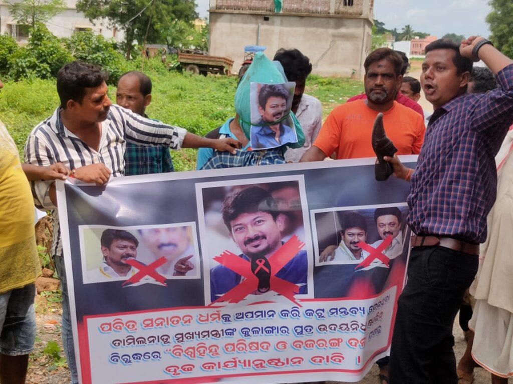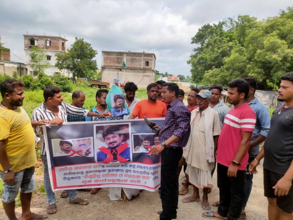 ତାମିଲନାଡୁ ମୁଖ୍ୟମନ୍ତ୍ରୀଙ୍କ ପୁତ୍ର ଉଦୟନିଧି ଷ୍ଟାଲୀନ ଦେଇଥିବା ସନାତନି ଧର୍ମର ବିରୋଧ ମନ୍ତବ୍ୟକୁ ନେଇ, ବିକ୍ଷୋପ ପ୍ରଦର୍ଶନ କରିଲା ପୁରୀ ଜିଲା କାକଟପୁର ଅସ୍ତରଙ୍ଗର ବିଶ୍ଵ ହିନ୍ଦୁ ପରିଷଦ ଓ ବଜରଙ୍ଗ ଦଳ ଶାଖା । ସନାତନ ଧର୍ମକୁ ନେଇ ତାମିଲନାଡୁ ମୁଖ୍ୟମନ୍ତ୍ରୀଙ୍କ ପୁଅ ଉଦୟନିଧିଙ୍କ ବିବାଦୀୟ ମନ୍ତବ୍ୟକୁ ନେଇ ସାରା ଭାରତ ଦେଶରେ ଉତ୍ତେଜନା ସୃଷ୍ଟି ହୋଇଛି । ବିଭିନ୍ନ ହିନ୍ଦୁ ସଙ୍ଗଠନ ପକ୍ଷରୁ ଏହାକୁ କଡ଼ା ବିରୋଧ କରାଯାଉଛି। ଏହି କ୍ରମରେ ପୁରୀ କାକଟପୁରର ବିଶ୍ଵ ହିନ୍ଦୁ ପରିଷଦ ଓ ବଜରଙ୍ଗ ଦଳ ଶାଖା ତରଫରୁ ଏହାକୁ ଦୃଢ ବିରୋଧ କରି ବ୍ଲକ କାର୍ଯ୍ୟଳୟ ସମ୍ମୁଖରେ ଏହାର କଡା ପ୍ରତିବାଦ ସ୍ୱରୂପ ବିକ୍ଷୋଭ କରିବା ସହ ଷ୍ଟାଲିନଙ୍କ କୁଶପୁତ୍ତଳିକା ଦାହ କରାଯାଇଛି । ଉଦୟନିଧି ଷ୍ଟାଲିନ ତାଙ୍କ ଭାଷଣରେ କହିଥିଲେ, “ସନାତନ ଧର୍ମ କରୋନା ଭାଇରସ, ଡେଙ୍ଗୁ, ମ୍ୟାଲେରିଆ ପରି । ଏଣୁ ଏହା ସହିତ ଲଢିବା ବଦଳରେ ଏହାର ସମୂଳ ବିନାଶ କରିବା ଉଚିତ । ହିନ୍ଦୁ ” ଜାତି, ଧର୍ମକୁ ଆଘାତ ଦେବାଭଳି ଷ୍ଟାଲିନଙ୍କ ଏଭଳି କୁମାନସିକତା ଧର୍ମଦ୍ରୋହୀ ମନ୍ତବ୍ୟକୁ ଚାରିଆଡ଼େ ବିରୋଧ କରାଯାଉଛି । ଏହି ମନ୍ତବ୍ୟକୁ ପୁରୀ କାକଟପୁର ଅସ୍ତରଙ୍ଗର ବଜରଙ୍ଗ ଦଳ ଓ ବିଶ୍ଵ ହିନ୍ଦୁ ପରିଷଦ ମଧ୍ୟ ଏହାର କଡା ପ୍ରତିବାଦ ସ୍ୱରୂପ ବିକ୍ଷୋଭ କରିବା ସହ ଷ୍ଟାଲିନଙ୍କ ଫଟୋରେ ଚପଲ ମାଡ଼ ସହିତ କୁଶପୁତ୍ତଳିକା ଦାହ କରିଛି । ସେପଟେ ଏଭଳି ବିବାଦୀୟ ମନ୍ତବ୍ୟ ପ୍ରତିବାଦରେ ସଙ୍ଘଠନ ତରଫରୁ କାକଟପୁର ଥାନାରେ ଏତଲା ଦେଇ ହିନ୍ଦୁ ଧର୍ମ ଦ୍ରୋହୀ ଷ୍ଟାଲିନଙ୍କ ଗିରଫ ଦାବି ମଧ୍ୟ କରାଯାଇଛି । ସର୍ଵ ପୁରାତନ ଶ୍ରେଷ୍ଠ ପବିତ୍ର ସନାତନ ଧର୍ମର ଅପମାନକୁ ସହ୍ୟ କରାଯିବନି ବୋଲି ସଂଗଠନର କାର୍ଯ୍ୟକର୍ତା ମାନେ କହିଛନ୍ତି, ସନାତନ ଧର୍ମ ବିରୋଧରେ ଉଦୟନିଧି ଦେଇଥିବା ଟିପ୍ପଣୀ ଦେଶର ୧୦୦ କୋଟି ଲୋକଙ୍କ ଭାବନାକୁ ଆଘାତ ଦେଇଛି। ଦେଶରେ ଯାହା ବି ବିକାଶ ହେଉଛି ସବୁ କିଛି ସନାତନ ଧର୍ମ ପାଇଁ। ଉଦୟନିଧି ତାଙ୍କ ଟିପ୍ପଣୀ ପାଇଁ କ୍ଷମା ମାଗିବା ଉଚିତ ବୋଲି ଶାଖା ପରିଚାଳକ ମନ୍ତବ୍ୟ ଦେଇଛନ୍ତି । ଯଦି ଏହି ଭୁଲ ପାଇଁ ଷ୍ଟାଲୀନ କ୍ଷମା ପାର୍ଥନା ନମାଗନ୍ତି, ତାହେଲେ ଆଗାମୀ ଦିନରେ ଏହାର କଡା ଜବାବ ଦିଆଯିବ ବୋଲି କହିଛନ୍ତି । କିନ୍ତୁ କେନ୍ଦ୍ର ସରକାର ଓ ରାଜ୍ୟ ସରକାର ଏପରି ଭୁଲ ମନ୍ତବ୍ୟ ପାଇଁ ଷ୍ଟାଲୀନଙ୍କ ବିରୋଧରେ କଣ ପାଇଁ କୌଣସି କାର୍ଯ୍ୟାନୁଷ୍ଠାନ ନେଉନାହାନ୍ତି ଏହା ଏକ ଦୁର୍ଭାଗ୍ୟଜନକ ବୋଲି ଶାଖା ପରିଚାଳକ କହିଛନ୍ତି ।