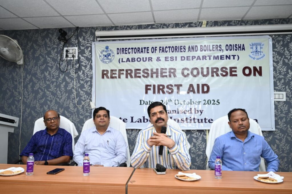 ଭୁବନେଶ୍ବର, ତା. ୨୪ ଅକ୍ଟୋବର ୨୦୨୫ ରାଜ୍ୟରେ କାରଖାନାମାନଙ୍କରେ ଶ୍ରମିକ ସୁରକ୍ଷା ଓ ସୁରକ୍ଷିତ କାର୍ଯ୍ୟସ୍ଥଳୀ ନିର୍ମାଣକୁ ସରକାର ପ୍ରାଥମିକତା ଦେଇଆସୁଛି। ଏହାକୁ ଦୃଷ୍ଟିରେ ରଖି, ଶ୍ରମ ଓ କର୍ମଚାରୀ ରାଜ୍ୟ ବୀମା ବିଭାଗର ମଞ୍ଜୁରୀକ୍ରମେ କାରଖାନା ଏବଂ ବାଷ୍ପୀତ୍ର ନିର୍ଦ୍ଦେଶାଳୟ ପକ୍ଷରୁ ନିୟମିତ ଭାବରେ ଭିନ୍ନ ଭିନ୍ନ ସୁରକ୍ଷା ସମ୍ପର୍କିତ ତାଲିମ କାର୍ଯ୍ୟକ୍ରମ ଆୟୋଜିତ ହେଉଛି।ସେହି କ୍ରମରେ, ଆଜି ତା. ୨୪.୧୦.୨୦୨୫ ରେ ରାଜ୍ୟ ଶ୍ରମ ପ୍ରତିଷ୍ଠାନ, ଭୁବନେଶ୍ବରର ସମ୍ମିଳନୀ କକ୍ଷରେ “ରିଫ୍ରେଶର୍ କୋର୍ସ ଇନ୍ ଫାର୍ଷ୍ଟ ଏଇଡ୍ – ସୁରକ୍ଷା ଏବଂ ଗୁଣବତ୍ତା” ବିଷୟରେ ଏକ ରାଜ୍ୟସ୍ତରୀୟ ତାଲିମ କର୍ମଶାଳା ଆୟୋଜିତ ହୋଇଥିଲା। ଉଦଘାଟନୀ ସଭାରେ କାରଖାନା ଏବଂ ବାଷ୍ପୀତ୍ର ନିର୍ଦ୍ଦେଶାଳୟର ଉପନିର୍ଦ୍ଦେଶକ (ସୁରକ୍ଷା) ଡଃ ମଳୟ କୁମାର ପ୍ରଧାନ ମୁଖ୍ୟ ଅତିଥି ଭାବେ ଉଦ୍ବୋଧନ ଦେଇ କହିଥିଲେ ଯେ, “କାରଖାନାମାନଙ୍କରେ ସ୍ୱାସ୍ଥ୍ୟ ଓ ସୁରକ୍ଷାକୁ ସର୍ବାଧିକ ଅଗ୍ରାଧିକାର ଦେବା ଆବଶ୍ୟକ।
