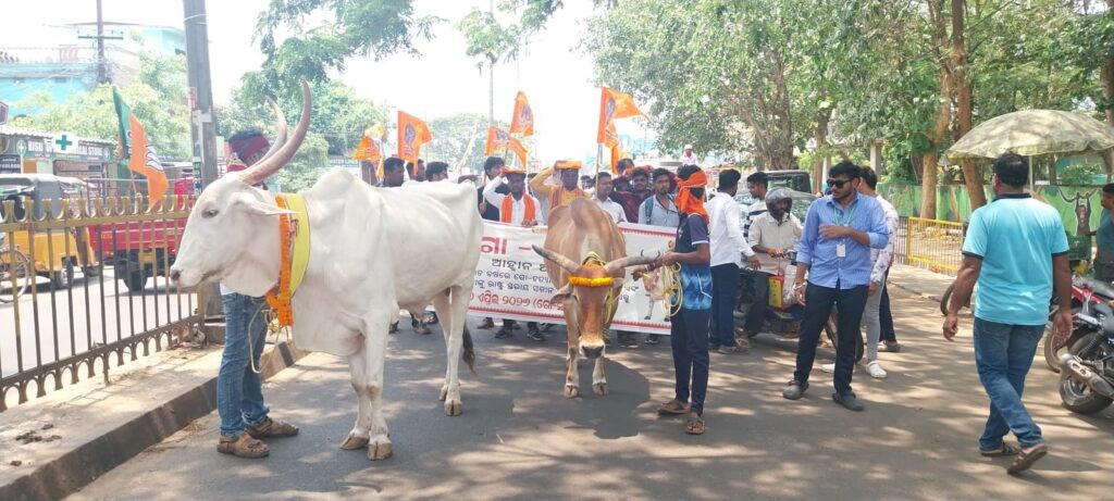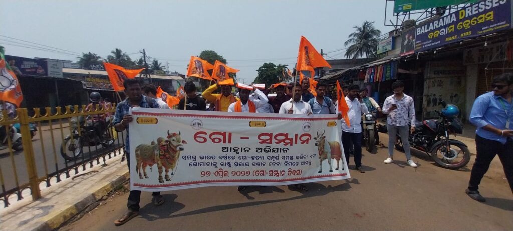 ଗୋମାତା ଙ୍କୁ ରାଷ୍ଟ୍ରମାତା, ଗୋହତ୍ୟା ବନ୍ଦ କରାଯାଉ ଗୋ ସମ୍ମାନ ଆହାନ ଅଭିଯାନ ପକ୍ଷରୁ ଶୋଭାଯାତ୍ରା, ରାଷ୍ଟ୍ରପତି, ପି.ଏମ, ସି.ଏମ ଙ୍କ ଉଦ୍ଦେଶ୍ୟରେ ଦାବିପତ୍ରଖୋର୍ଦ୍ଧା,୨୭।୪() : ହିନ୍ଦୁ ସଂସ୍କୃତିର ରାଷ୍ଟ୍ର ଆରାଧା ଗୋମାତାଙ୍କୁ ରାଷ୍ଟ୍ର ମାତା ଏବଂ ଭାରତ ବର୍ଷରୁ ସମ୍ପୂର୍ଣ ଭାବେ ଗୋହତ୍ୟା ସମାପ୍ତ ଦାବି ନେଇ ଗୋ ସମ୍ମାନ ଅଭିଯାନ ଖୋଦ୍ଧା ଶାଖା ଆବାହକ ରାଧାମୋହ‌ନ ପ୍ରଧାନଙ୍କ ନେତୃତ୍ବରେ ସୋମବାର ନୂଆ ବସଷ୍ଟାଣ୍ଡରୁ ଗୋମାତାଙ୍କୁ ସାଥରେ ଧରି ବିଶାଳ ପଦଯାତ୍ରାରେ ବାହାରି ତହସିଲଦାରଙ୍କ କାର୍ଯ୍ୟାଳୟରେ ପହଂଚିଥିଲେ । ସେଠାରେ ଗୋମାତାଙ୍କ ସୁରକ୍ଷା ପାଇଁ ସ୍ଲୋଗାନ ଦେଇଥିଲେ I ଗୋମାତାର ସେବା, ସୁରକ୍ଷା ସମ୍ମାନ ଦାବିରେ ରାଷ୍ଟ୍ରପତି, ପ୍ରଧାନମନ୍ତ୍ରୀ ରାଜ୍ୟପାଳ ଏବଂ ମୁଖ୍ୟମନ୍ତ୍ରୀଙ୍କ ଉଦ୍ଦେଶ୍ୟରେ ପ୍ରାୟ ୫ହଜାର ଦସ୍ତଖତ
