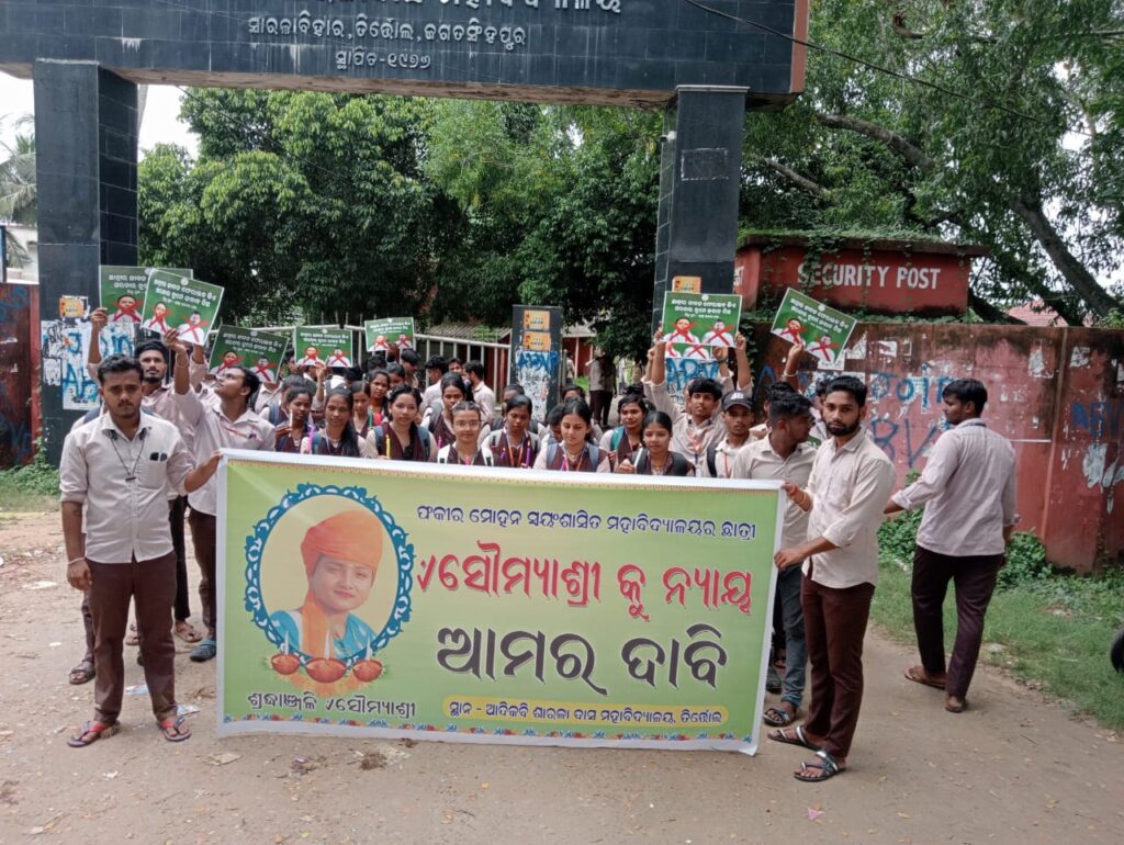ତିର୍ତ୍ତୋଲ-୧୫/୭-ମଙ୍ଗଳବାର ପୂର୍ବାହ୍ନ ୧୦ ଘଟିକା ସମୟରେ ତିର୍ତ୍ତୋଲ ସ୍ଥିତ ଆଦିକବି ସାରଳା ଦାସ ମହାବିଦ୍ୟାଳୟ ସମ୍ମୁଖରେ ଶତାଧିକ ଛାତ୍ର ଛାତ୍ରୀ ବିକ୍ଷୋଭ ପ୍ରଦର୍ଶନ କରିଛନ୍ତି। ବାଲେଶ୍ବର ଫକୀର ମୋହନ ସ୍ଵୟଂ ଶାସିତ ମହାବିଦ୍ୟାୟର ଛାତ୍ରୀ ସୋମ୍ୟାଶ୍ରୀ ମୃତ୍ୟୁ ଘଟଣାରେ ନ୍ୟାୟ ଓ ଉପଯୁକ୍ତ ତଦନ୍ତ ପାଇଁ ଛାତ୍ର ଛାତ୍ରୀମାନେ ହାତରେ ସରକାର ବିରୋଧୀ ପ୍ଲାକାର୍ଡ ଧରି ଅନ୍ଦୋଳନକୁ ଓହ୍ଲାଇଥିଲେ ।ମୂଳିସିଙ୍ଗ ପଞ୍ଚାୟତର ସରପଞ୍ଚ ସଫି ଆଜମ ଏବଂ ଯୁବ ଛାତ୍ର କଂଗ୍ରେସ ସଭାପତିଙ୍କ ନେତୃତ୍ୱ ରେ ଛାତ୍ର ଛାତ୍ରୀମାନେ କଟକ ପାରାଦୀପ ରାସ୍ତା ଅବରୋଧ କରିବା ସହିତ ବିଜେପି ସରକାରଙ୍କ ବିରୋଧ ରେ ନାରାବାଜୀ କରିଥିଲେ।