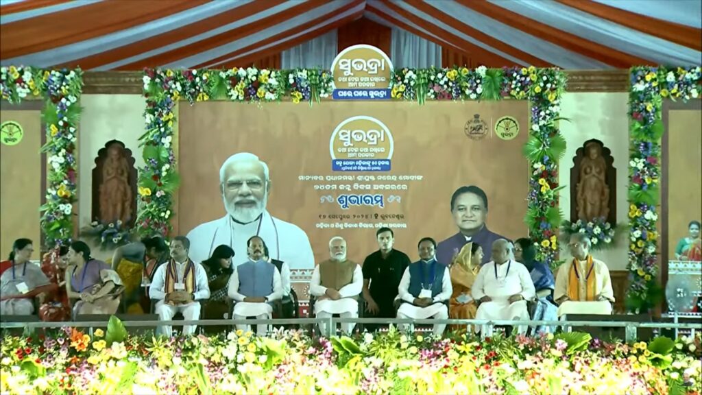 ଭୁବନେଶ୍ବର ଜନତା ମୈଦାନରେ ପ୍ରଧାନମନ୍ତ୍ରୀ ନରେନ୍ଦ୍ର ମୋଦୀ ଏହାର ଶୁଭ ଉଦଘାଟନ କରିଛନ୍ତି । ପ୍ରଧାନମନ୍ତ୍ରୀ ନିଜ ଜନ୍ମ ଦିନ ଅବସରରେ ସେ ଓଡିଶାବାସୀଙ୍କୁ ଭେଟି ଦେଇଛନ୍ତି । ରାଜ୍ୟର ପ୍ରତ୍ୟକ ମହିଳା ସ୍ବାବଲମ୍ବୀ ହେବା ସହ ରୋଜଗାରକ୍ଷମ ହୋଇପାରିବେ, ତେବେ ଏହାକୁ ଦୃଷ୍ଟିରେ ରଖି ଏହି ଯୋଜନାର ଶୁଭାରମ୍ଭ କରାଯାଇଥିବା , ପ୍ରଧାନମନ୍ତ୍ରୀ ତାଙ୍କ ଅଭିଭାଷଣରେ କହିବା ସହ ପ୍ରତ୍ୟକ ଯୋଗ୍ୟ ହିତାଧିକାରୀ ଆକାଉଣ୍ଟକୁ ଆଜି ପ୍ରଥମ କିସ୍ତିର ଟଙ୍କା ପଠାଯାଇଛି । ଯାହାକୁ ନେଇ ମହିଳାମାନେ ଖୁସିବ୍ୟକ୍ତ କରିବା ସହ ପ୍ରଧାନମନ୍ତ୍ରୀଙ୍କୁ ଧନ୍ୟବାଦ ଜଣାଇଛନ୍ତି । ରାଜ୍ୟର ଏକ କୋଟି ମହିଳା ଏହି ଯୋଜନାରେ ସାମିଲ ହେବା ନେଇ ଲକ୍ଷ୍ୟ ରଖାଯାଇଥିବା ପ୍ରଧାନମନ୍ତ୍ରୀ କହିଛନ୍ତି ତାସହ ରାଜ୍ୟର ଶେଷ ଯୋଗ୍ୟ ହିତାଧିକାରୀ ଏହି ଯୋଜନାରେ ସାମିଲ ହେବା ପର୍ଯ୍ୟନ୍ତ ରେଜିଷ୍ଟ୍ରେସନ ଜାରି ରହିବ । ଏହି କାର୍ଯ୍ୟକ୍ରମରେ ଜନତା ମୈଦାନରେ ହଜାର ହଜାର ମହିଳାଙ୍କ ସମାଗମ ହୋଇଥିଲା । ଆକର୍ଷଣୀୟ ଷ୍ଟେଜ ସାଙ୍ଗକୁ 4ଟି ସେଡ୍ ପ୍ରସ୍ତୁତ କରାଯାଇଥିଲା । ଏଥିରେ ସୁଭଦ୍ରା ହିତାଧିକାରୀ, ଭିଆଇପି, VVIP ଙ୍କ ସମେତ ନେତା ,ମନ୍ତ୍ରୀ, ଗଣମାଧ୍ୟମ ପ୍ରତିନିଧି ଏବଂ ଅନ୍ୟାନ୍ୟ ବରିଷ୍ଠ ଅଧିକାରୀଙ୍କ ବସିବାର ସ୍ବତନ୍ତ୍ର ବ୍ୟବସ୍ଥା କରାଯାଇଥିଲା । () ତେବେ ଭୁବନେଶ୍ବର ଏୟାରପୋର୍ଟରେ ପ୍ରଧାନମନ୍ତ୍ରୀଙ୍କୁ ଭବ୍ୟ ସ୍ବାଗତ କରାଯିବା ପରେ ସେ ସିଧା ଗାଡ଼କଣ ବସ୍ତିକୁ ଯାଇଥିଲେ । ସେଠାରେ ଗାଡକଣ ଗାଁରେ ପିଏମ୍ ଆବାସ ହିତାଧୀକାରୀଙ୍କ ସହ ଆଲୋଚନା କରିଥିଲେ ପ୍ରଧାନମନ୍ତ୍ରୀ ମୋଦି। ଏହାସହ ଗୋଠପାଟଣା ସ୍ପୋର୍ଟସ ଭ୍ୟାଲିର ମଧ୍ୟ ଶିଳାନ୍ୟାସ କରିଥିଲେ । ତାସହ ପ୍ରଧାନମନ୍ତ୍ରୀ ୧୦ ଲକ୍ଷ ପିଏମ୍ ଆବାସ ଗ୍ରାମୀଣ ହିତାଧିକାରୀଙ୍କୁ ଯୋଜନାର ପ୍ରଥମ କିସ୍ତି ପ୍ରଦାନ କରିବା ସହ ୨୬ଲକ୍ଷ ପିଏମ୍ ଆବାସ ଗ୍ରାମୀଣ ଏବଂ ସହରାଞ୍ଚଳ ହିତାଧିକାରୀଙ୍କ ଗୃହ ପ୍ରବେଶ କରାଇଥିଲେ ।