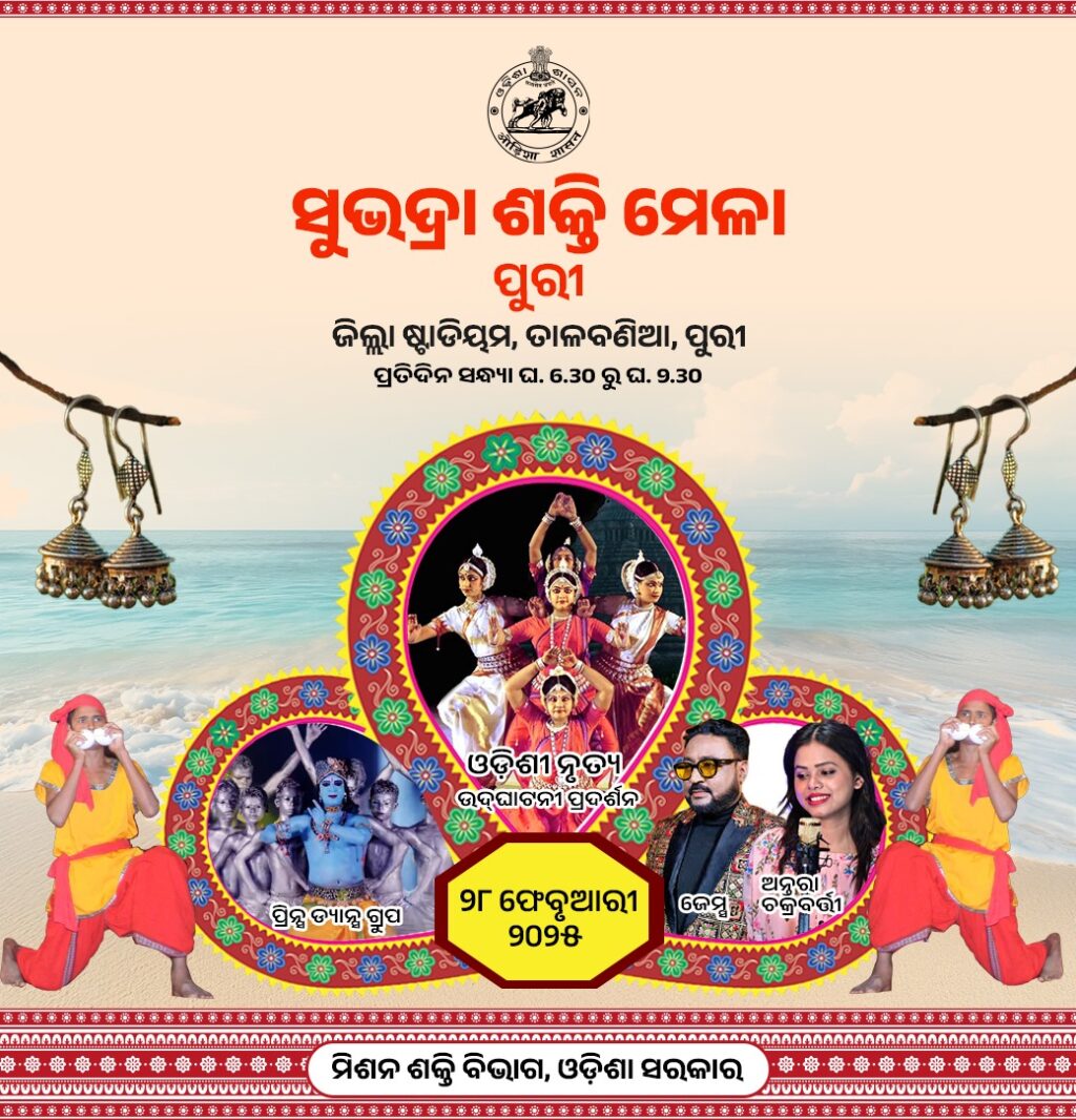 ଫେବୃଆରୀ ୨୮ରୁ ମାର୍ଚ୍ଚ ୬ ପର୍ଯ୍ୟନ୍ତସୁଭଦ୍ରା ଶକ୍ତି ମେଳାପୁରୀ ୨୬/୨ ମିଶନ ଶକ୍ତି ବିଭାଗ ପକ୍ଷରୁ ପୁରୀ ତାଳବଣିଆ ଜିଲ୍ଲା ପଡିଆ ଠାରେ ଆରମ୍ଭ ହେଉଛି ଜିଲ୍ଲା ମିଶନ ଶକ୍ତି ମେଳା।ଏହି ମେଳା ଚଳିତ ମାସ ୨୮ ତାରିଖ ରୁ ମାର୍ଚ୍ଚ ୬ ତାରିଖ ପର୍ଯ୍ୟନ୍ତ ଅନୁଷ୍ଠିତ ହେବ।ଏହି ମେଳା ରେ ୧୫୦ ଟି ଷ୍ଟଲର ବ୍ୟବସ୍ଥା ହୋଇଛି।ଯେଉଁ ଥିରେ ହସ୍ତଶିଳ୍ପ,ମିଲେଟ, କଳାକୃତି, ଅର୍ଗାନିକ ଉତ୍ପାଦ ମାନର ବିପଣୀ ସହ ଫୁଡ ଷ୍ଟଲ ମଧ୍ୟ ଖୋଲିବ।ଜିଲ୍ଲା ତଥା ଜିଲ୍ଲା ବାହାରର ମିଶନ ଶକ୍ତି ର ମା ମାନଙ୍କର ଉତ୍ପାଦ ପ୍ରଦର୍ଶନ ସହ ବିକ୍ରୟ କରାଯିବ।ଏହି ମେଳାକୁ ଉପ ମୁଖ୍ୟମନ୍ତ୍ରୀ ପ୍ରଭାତୀ ପରିଡା ଚଳିତ ମାସ ୨୮ ତାରିଖରେ ଉଦଘାଟନ କରିବାର କାର୍ଯ୍ୟକ୍ରମ ରହିଛି।ପ୍ରତ୍ୟେକ ଦିନ ମେଳା ପୂର୍ବାହ୍ନ ଦିବା ୧୧ ଘଟିକା ରୁ ରାତ୍ରି ୧୦ ଘଟିକା ପର୍ଯ୍ୟନ୍ତ ଖୋଲା ରହିବ ବୋଲି ମିଶନ ଶକ୍ତି ବିଭାଗ ପକ୍ଷରୁ ସୂଚନା ମିଳିଛି।ପ୍ରତ୍ୟେକ ସଂଧ୍ୟାରେ ସାଂସ୍କୃତିକ କାର୍ଯ୍ୟକ୍ରମର ବ୍ୟବସ୍ଥା କରାଯାଇଛି।ମହିଳା ମାନଙ୍କୁ ଆତ୍ମ ନିର୍ଭରଶୀଳ ଓ ଆର୍ଥିକ ଅଭିବୃଦ୍ଧି ରେ ଯୋଗ ଦାନ ଏହି ମେଳାର ଉଦ୍ଦେଶ୍ୟ।ସେମାନେ ସେମାନଙ୍କ ଉତ୍ପାଦକୁ ପ୍ରଦର୍ଶନ ଓ ବିକ୍ରୟ ଦ୍ଵାରା ଅଧିକ ଅନୁପ୍ରାଣିତ ଓ ଉତ୍ସାହିତ ହେବେ।ଯାହା ସେମାନ ଙ୍କୁ ଅଧିକ ସକ୍ଷମ ଓ ଦକ୍ଷତା ସମ୍ପର୍ଣ୍ଣ କରିବ।