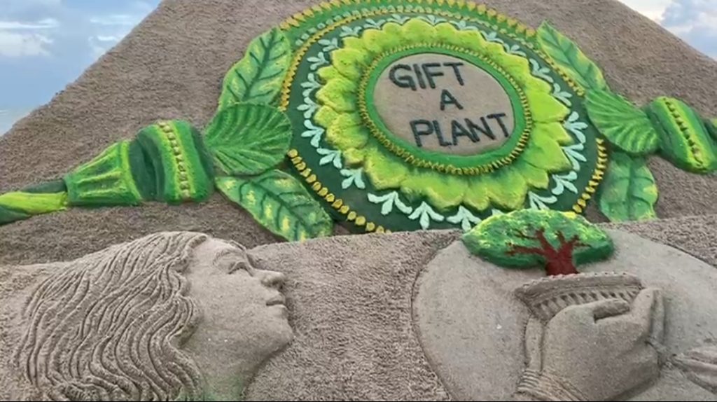 Ar – ଭାଇ ଭଉଣୀଙ୍କର ପବିତ୍ର ସମ୍ପର୍କର ପ୍ରତିକ ରକ୍ଷାବନ୍ଧନ। ପବିତ୍ର ରାକ୍ଷୀପୂର୍ଣ୍ଣିମା ଅବସରରେ ବାଲୁକାକୃତି ଜରୀଆରେ ଶୁଭେଚ୍ଛା ଜଣାଇଛନ୍ତି ବାଲୁକାଶିଳ୍ପୀ ପଦ୍ମଶ୍ରୀ ସୁଦର୍ଶନ ପଟ୍ଟନାୟକ। ଏଥିସହିତ ବାଲୁକାକୃତିରେ ବିଶ୍ୱକୁ ଦେଇଛନ୍ତି ନିଆରା ବାର୍ତ୍ତା। ଏବେ ଅବାଧରେ ଗଛକଟା ହେବା ଯୋଗୁଁ ବିଶ୍ୱରେ ଦେଖାଦେଉଛି ଅକ୍ସିଜେନର ଅଭାବ।ଜୀବଜଗତ ଅସୁରକ୍ଷିତ ହୋଇପଡିଛି। ଏଣୁ ରକ୍ଷାବନ୍ଧନ ପର୍ବରେ ଭଉଣୀ ଭାଇକୁ ରାକ୍ଷୀ ପରିବର୍ତ୍ତେ ଚାରାଟିଏ ଉପହାର ଦେବାକୁ ଏହି ବାଲୁକାକୃତି ମାଧ୍ୟମରେ ସଚେତନର ବାର୍ତ୍ତା ଦେଇଛନ୍ତି ସୁଦର୍ଶନ। ପୁରୀ ନିଳାଦ୍ରୀ ବେଳାଭୂମିରେ ସେ ନିର୍ମାଣ କରିଥିବା ବାଲୁକୃତିରେ ସବୁଜିମା ଭରା ରାକ୍ଷୀଟିଏ ପ୍ରଦର୍ଶିତ କରିବା ସହ ପ୍ରଦର୍ଶିତ କରିଛନ୍ତି ଭାଇ ହାତକୁ ରାକ୍ଷୀ ନୁହେଁ ବରଂ ଚାରାଟିଏ ପ୍ରଦାନ କରୁଥିବାର ଆକର୍ଷଣୀୟ ଦୃଶ୍ୟ। ଆଉ ରାକ୍ଷୀରେ ରହିଛି GIFT A PLANT ଶିର୍ଷକ ଏକ ସଚେତନତାର ବାର୍ତ୍ତା।