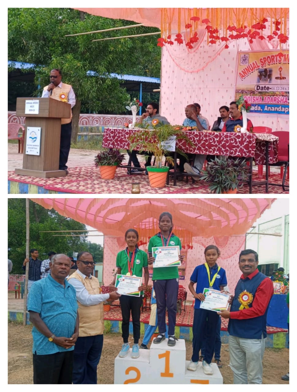 କେନ୍ଦୁଝର ଜିଲ୍ଲା ଆନନ୍ଦପୁର ବ୍ଲକ ଅନ୍ତର୍ଗତ ଶାଳପଡ଼ା ସ୍ଥିତ ଓଡ଼ିଶା ଆଦର୍ଶ ବିଦ୍ୟାଳୟର ୨୦୨୪-୨୫ ଶିକ୍ଷା ବର୍ଷର ଦୁଇଦିନିଆ ବାର୍ଷିକ କ୍ରୀଡ଼ା ପ୍ରତିଯୋଗିତା ଡିସେମ୍ବର ୧୬ ଓ ୧୭ ତାରିଖରେ ବହୁ ଆଡ଼ମ୍ବରରେ ଅନୁଷ୍ଠିତ ହୋଇଯାଇଛି lବିଦ୍ୟାଳୟର ଅଧ୍ୟକ୍ଷ ସୌମ୍ୟରଞ୍ଜନ ବେହେରାଙ୍କ ତତ୍ତ୍ୱାବଧାନରେ ସ୍ଥାନୀୟ ଅଗ୍ନିଶମ ଅଧିକାରୀ ରାଧୁଚରଣ ମଲ୍ଲିକ, ବ୍ୟାସନଗର ମହାବିଦ୍ୟାଳୟର ଅବସରପ୍ରାପ୍ତ କ୍ରୀଡ଼ା ଶିକ୍ଷ‌କ ଶ୍ରୀଯୁକ୍ତ ବାବାଜୀ ଚରଣ ସାହୁ ଏବଂ ସ୍ଥାନୀୟ ବୁଲୁ ପଟ୍ଟନାୟକ ଆଦି ଯୋଗଦେଇ ଏହାର ଶୁଭାରମ୍ଭ କରିଥଲେ l ଏହି ଅବସରରେ ମସାଲରେ ଅଗ୍ନି ସଂଯୋଗ କରି ଏକ ଶୋଭାଯାତ୍ରା ବାହାରି ବିଦ୍ୟାଳୟ ନିକଟସ୍ଥ ଜଗନ୍ନାଥ ମନ୍ଦିରରୁ ବିଦ୍ୟାଳୟ ସ୍ଥିତ ଖେଳ ପଡିଆକୁ ମସାଲ୍ ଅଣାଯାଇଥିଲା l ଠିକ୍ ସେହିପରି କ୍ରୀଡ଼ାର ଶେଷ ଦିନରେ କ୍ରୀଡ଼ାବିତ୍ ମାନଙ୍କୁ ପ୍ରେରଣା ଦେବାପାଇଁ ବିଶିଷ୍ଟ ଶିଶୁ ସାହିତ୍ୟିକ ଶ୍ରୀଧର ମହାରଣା , ସହକାରୀ ବ୍ଲକ୍ ଶିକ୍ଷାଧିକାରୀ ଶ୍ରୀଯୁକ୍ତ ହେମେନ୍ଦ୍ର ନାଥ ମହାନ୍ତି ଓ କ୍ରୀଡାବିତ ବୁଲୁ ପଟ୍ଟନାୟକ ଆଦି ଉପସ୍ଥିତ ଥିଲେ l ଏହି ଅବସରରେ ଅତିଥିମାନେ କ୍ରୀଡ଼ାର ଉପାଦେୟତା ସମ୍ବନ୍ଧରେ ବାର୍ତ୍ତା ଦେବା ସହ କୃତି ପ୍ରତିଯୋଗୀଙ୍କୁ ପ୍ରମାଣପତ୍ର ଓ ମେଡାଲ ପ୍ରଦାନ କରିଥିଲେ l କ୍ରୀଡ଼ା ଶିକ୍ଷ‌ୟିତ୍ରୀ ସାଗରିକା ଜେନା ଖେଳକୁ ପରିଚାଳନା କରିଥିବାବେଳେ ଶିକ୍ଷୟିତ୍ରୀ ସଲୋନୀ ସମାପିକା ମଞ୍ଚ ପରିଚାଳନା କରିଥିଲେ l ବିଦ୍ୟାଳୟର ସମସ୍ତ ଶିକ୍ଷକ ଶିକ୍ଷୟିତ୍ରୀ ଓ ଛାତ୍ରଛାତ୍ରୀଙ୍କ ସହଯୋଗରେ କ୍ରୀଡ଼ା ଉତ୍ସବଟି ସାଫଲ୍ୟ ହୋଇଥିଲା l