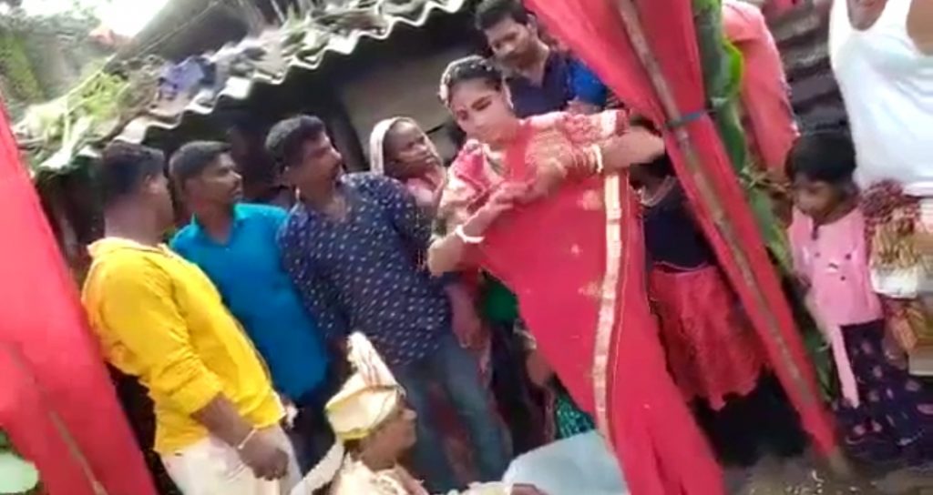 ବାଲେଶ୍ଵର,୧୯/୦୫– ବାହାଘର ବେଦୀରୁ ଉଠି ପଳାଇଲା କନ୍ୟା । ବାହା ହେବାକୁ ଆସି ହଟହଟା ହେଲା ବର । ଶିଶୁପାଳ ହୋଇ ଫେରିଗଲା ବର । ବାଲେଶ୍ଵର ଜିଲ୍ଲା ବାଲିଆପାଳ ଥାନା ଅନ୍ତର୍ଗତ ରେମୁ ଗ୍ରାମରେ ଘଟିଛି ଏଭଳି ଅଭାବନୀୟ ଘଟଣା । ବାହାଘର ସମୟର ଘଟଣା ଏବେ ସୋସିଆଲ ମିଡିଆରେ ଭାଇରାଲ ହେବାରେ ଲାଗିଛି । ବାହାଘର ସମୟରେ କନ୍ୟା ହାତରୁ ଶଙ୍ଖା ଖୋଲି ଦେବାରୁ ପରିବାର ଲୋକେ ଯୁବତୀକୁ ମାଡ଼ ମାରୁଥିବା ଦୃଶ୍ୟ ଦେଖିବାକୁ ମିଳିଛି । ସୂଚନା ଅନୁସାରେ ଜଳେଶ୍ଵର ଥାନା ଅନ୍ତର୍ଗତ ଦେବକୁମାର ଗ୍ରାମର ଜନୈକ ଯୁବକଙ୍କ ବାହାଘର ବାଲିଆପାଳ ଥାନା ରେମୁ ଗ୍ରାମରେ ଜନୈକା ଯୁବତୀଙ୍କ ସହିତ ସ୍ଥିର ହୋଇଥିଲା। ମାତ୍ର ପୂର୍ବରୁ ଯୁବତୀ ଜଣକ ଅନ୍ୟ ଜଣେ ଯୁବକକୁ ଭଲ ପାଇଥିବାରୁ ସେ ବାହା ହେବା ପାଇଁ ରାଜି ହୋଇ ନଥିଲେ। ମାତ୍ର ଯୁବତୀଙ୍କ ପରିବାର ଲୋକେ ଜୋର ଜବରଦସ୍ତ କରି ଯୁବତୀଙ୍କୁ ବିବାହ କରିବା ପାଇଁ କହିଥିଲେ । ତେବେ ଗତ ୧୩ ତାରିଖରେ ବର ଜଣକ ବରଯାତ୍ରୀ ନେଇ ଯୁବତୀଙ୍କ ଘରେ ପହଞ୍ଚିବା ପରେ ଉଭୟ ବର କନ୍ୟା ବେଦୀରେ ବସି ହାତଗଣ୍ଠି ପଡିବା ପରେ ପରେ ବର କନ୍ୟାକୁ ସିନ୍ଦୁର ପିନ୍ଧାଇବା ସମୟରେ ଯୁବତୀ ଜଣକ ବେଦୀରୁ ଉଠି ପଡିବା ସହ ହାତରୁ ଶଙ୍ଖା ଖୋଲି ଦେଇ ବର ଉପରକୁ ଫୋପାଡି ଦେଇଥିଲେ । ସେ ପୂର୍ବରୁ ଅନ୍ୟ ଜଣକୁ ବାହା ହୋଇଛନ୍ତି ,ତେଣୁ ପୁଣିଥରେ ବାହା ହେବେନି ବୋଲି ସିଧା ସିଧା ମନା କରିଦେଇଥିଲେ । ଏହା ଦେଖି ବର ଜଣକ ବେଦୀରେ ବେହୋସ ହୋଇଯାଇଥିଲେ। ତେବେ ଯୁବତୀଙ୍କ ପରିବାର ଲୋକେ ଯୁବତୀଙ୍କୁ ସେଠାରେ ମାଡ ମାରୁଥିବାର ଦୃଶ୍ୟ ମଧ୍ୟ ଭାଇରାଲ ହେବାରେ ଲାଗିଛି।