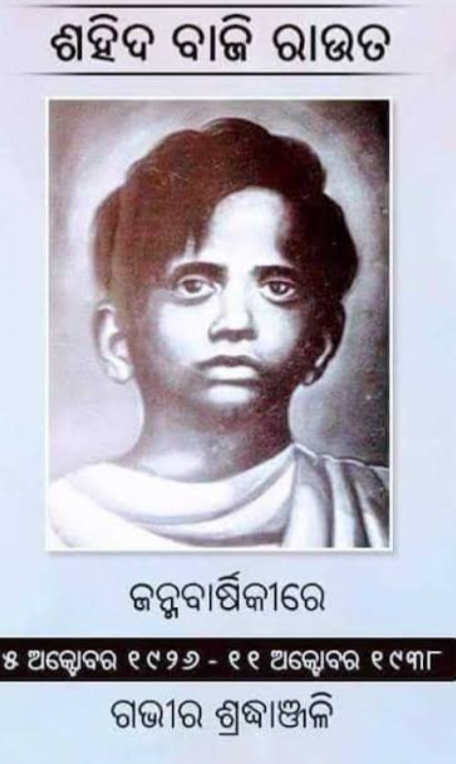 ବ୍ରହ୍ମପୁର ଅଗ୍ରଣୀ ସାଂସ୍କୃତିକ ଅନୁଷ୍ଠାନ ପୂଜ୍ୟ ପୂଜା ସମିତି ପକ୍ଷରୁ ସ୍ୱାଧୀନତା ସଂଗ୍ରାମର ସର୍ବକନିଷ୍ଠ ଯୋଦ୍ଧା ତଥା ଶହୀଦ ବାଜି ରାଉତଙ୍କ ୯୮ତମ allଜୟନ୍ତୀକୁ ଯଥା ସମ୍ମାନର ସହ ପାଳନ ହୋଇଯାଇଛି l ବାଜି ରାଉତଙ୍କ ଉଧେଶ୍ୟରେ ସମିତି ସମ୍ପାଦକ ଏସ.ଶାମ୍ବାଶିବା ରାଓଙ୍କ ଅଧ୍ୟକ୍ଷତାରେ ଏକ ସ୍ମୃତି ସଭା ସ୍ଥାନୀୟ ବିଜିପୁର କମ୍ୟୁନିଟି ହଲ ଠାରେ ଆୟୋଜିତ ହୋଇଯାଇଛି l ଢେଙ୍କାନାଳ ଜିଲ୍ଲାର ନୀଳକଣ୍ଠପୁର ଗ୍ରାମରେ ୧୯୨୬ମସିହା ଅକ୍ଟୋବର ୫ ତାରିଖରେ ବାଜି ରାଉତ ଜନ୍ମ ଗ୍ରହଣ କରିଥିଲେ l ରାଜାର ଅତ୍ୟାଚାର ବିରୁଦ୍ଧରେ ଢେଙ୍କାନାଳର ଗାଁ ଗାଁ ରେ ପ୍ରଜା ବିଦ୍ରୋହ ଦେଖାଦେଇ ପ୍ରଜା ମଣ୍ଡଳ ଗଠନ କରାଯାଇଥିଲା l