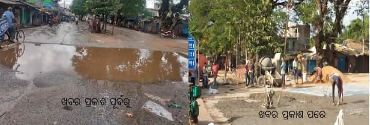ଖବର ପ୍ରକାଶ ପରେ ରାସ୍ତା ମରାମତି ହେଲା।