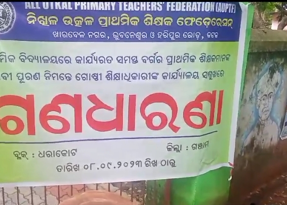 ଗଂଜାମ ଜିଲ୍ଲା ଧରାକୋଟ ବ୍ଲକ୍ ଶିକ୍ଷା ଅଧିକାରୀ କାର୍ଯ୍ୟାଳୟ ସମ୍ମୁଖରେ ଗଣ ଧାରଣା, ନିଖିଳ ଉତ୍କଳ ପ୍ରାଥମିକ ଶିକ୍ଷକ ଫେଡେରେସନ ଆହ୍ବାନ କ୍ରମେ ଧରାକୋଟ ବ୍ଲକ୍ ସମ୍ମୁଖରେ ରେ ଶିକ୍ଷକ ଓ ଶିକ୍ଷୟିତ୍ରୀ ଙ୍କ ଗଣ ଧାରଣା ଜାରି ଆଜି ଠାରୁ ସମୂହ ପ୍ରାଥମିକ ଶିକ୍ଷକ ଛୁଟି ନେଲେ ବ୍ଲକ୍ ଶାଖା ସଭାପତି ଶ୍ରୀ ଶୁକ୍ର ବେହେରା ନେତୃତ୍ୱରେ ,୩ଦଫା ଦାବି ନେଇ ଆରମ୍ଭ ହୋଇଥିବା ଏ ଗଣ ଧାରଣା ଆଜି ଠାରୁ ଷଷ୍ଠ ଦିନରେ ପହଂଚିଛି। ପ୍ରାଥମିକ ଶିକ୍ଷା ରୁ ଠିକା ନିଯୁକ୍ତି ଉଛେଦ।ଲେଵୁଲ ଲାଇନ୍ ଗ୍ରେଡ଼ ପେଏ ଲାଗୁ। ଏବଂ ପୁରୁଣା ପେନସନ ପୂର୍ଣ୍ଣ ପ୍ରଚଳନ କରିବା ଦାବି କରି ଏ ଗଣ ଧାରଣା ଜାରି ରହିଛି।ଏ ଗଣ ଧାରଣା ରେ ବ୍ଲକ୍ ସଂଘ ର ସଭାପତି, ଉପସଭାପତି, କୋଷାଧ୍ୟକ୍ଷ, ସହ ସଂପାଦକ, ଉପଦେଷ୍ଟା, ଜିଲ୍ଲା ସଦସ୍ୟ, ବ୍ଲକ୍ ସଂଯୋଜକ । କ୍ରମକତ୍ରା ଙ୍କ ସମେତସ୍ତେ ବ୍ଲକ୍ ପ୍ରାଥମିକ ବିଦ୍ୟାଳୟ ର ଶିକ୍ଷକ ଓ ଶିକ୍ଷୟିତ୍ରୀ ମାନେ ଗଣ ଧାରଣା ସାମିଲ ହୋଇଛନ୍ତି। ଦାବି ପୂରଣ ନହେବା ପର୍ଯ୍ୟନ୍ତ,ଗଣ ଧାରଣା ଜାରି ରହିବ ବୋଲି ସଂଘ ପକ୍ଷରୁ ଏକ ଦାବି ପତ୍ର ଶିକ୍ଷା ଅଧିକାରୀ କୁ ଦିଆଯାଇଛି।