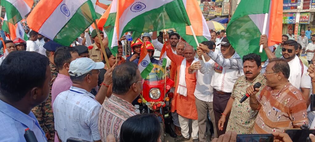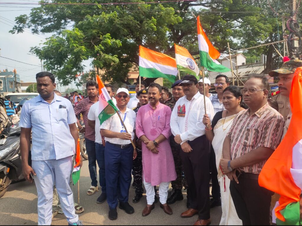 ଜିଲ୍ଲାପାଳ ଙ୍କ କାର୍ଯ୍ୟଳୟରୁ ସାଇକେଲ ଓ ମୋଟର ସ।ଇକେଲ ଯାନରେ ତ୍ରୀରଙ୍ଗା ସହିତ ବାହାରି ଅପର୍ତି ବିନ୍ଧା ଛକ, ମୋଚି ଛକ,ସନ୍ଥିଆ ପୋଲ, ଏନ.ସି. ଉଚ୍ଚ ବିଦ୍ୟାଳୟ, ପୁରୁଣା ବଜାର ଥାନା,ଗୋଶାଳା ଛକ,ଡାହାଣୀ ଗାଡିଆ ଛକ, ବର୍ମା ବାଏ ପାସ ଛକ, ରାଜଘାଟ ପୋଲ, ଟାଉନ ଥାନା ଛକ ଦେଇ ନଗର ପରିକ୍ରମା କରି ଜିଲ୍ଲ।ପାଳଙ୍କ କାର୍ଯ୍ୟଳୟରେ ପହଞ୍ଚି ଥିଲେ।ଶୋଭାଯାତ୍ରାରେ ସ୍ଥାନେ ସ୍ଥାନେ ପାନୀୟ ଜଳ / ଦହି ପାଣି ବ୍ୟବସ୍ଥା ରୋଟରୀ କ୍ଲବ୍ ମିଡ ଟାଉନ, lions କ୍ଲବ ଓ ସେଇ ପରି ଭଦ୍ରକ ବସ ସିଣ୍ଡିକେଟ ତରଫରୁ ଜିଲ୍ଲ।ପାଳ ଙ୍କ କାର୍ଯ୍ୟଳୟ ପରିସରରେ ସମସ୍ତଙ୍କ ପାଇଁ ଖାଦ୍ୟ ଓ ପାନୀୟର ବ୍ୟବସ୍ଥା କରାଯାଇଥିଲା। ଦେଶକୁ ସୁରକ୍ଷିତ ରଖିବା ସହ ନାଗରିକଙ୍କ ଜୀବନ ରକ୍ଷା କରିଥିବା ଭାରତୀୟ ସେନା ବାହିନୀଙ୍କ ବଳିଷ୍ଠ ଭୂମିକା ଥିବା ବେଳେ ସରକାରଙ୍କ ତରଫରୁ ବ୍ୟାପକ ପ୍ରସ୍ତୁତି କରାଯାଇଥିବାରୁ ଏବଂ ଦେଶ ପ୍ରେମର ପ୍ରୀତି ଜନ ମାନସରେ ତ୍ରିରଙ୍ଗା ଯାତ୍ରା ମ।ଧ୍ୟମ ରେ ଉଦ୍ରେକ କରି ଥିବାରୁ ସାଧାରଣ ନାଗରିକ ସମସ୍ତ ପ୍ରଶାସନିକ ଅଧିକାରୀମା ନ ଙ୍କୁ ସାଧୁ ବାଦ ଜଣାଇ ଥିଲେ।