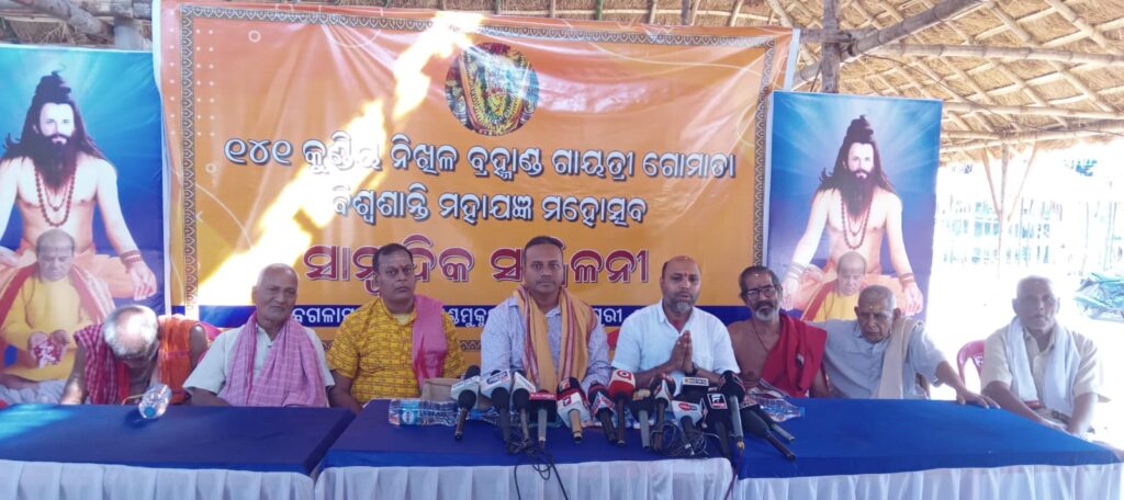 ଭୁବନେଶ୍ୱର /ପୁରୀ :-ପିପିଲି,ଦାଣ୍ଡମୁକୁନ୍ଦପୁର ମା ବଗଲାମୁଖୀ ପୀଠ ଠାରେ ଚଳିତ ରବିବାର ୧୫ ତାରିଖ ଠାରୁ ସପ୍ତାହ ବ୍ୟାପି ୧୪୧ କୁଣ୍ଡିୟ ନିଖିଳ ବ୍ରହ୍ମ୍ମାଣ୍ଡ ଗାୟତ୍ରୀ ଗୋମାତା ବିଶ୍ୱଶାନ୍ତି ଯଜ୍ଞ ଅନୁଷ୍ଠିତ ହେବାକୁ ଯାଉଛି।ଏହି ଉପଲକ୍ଷେ ପୀଠ ଠାରେ ଆଜି ଏକ ସାମ୍ବାଦିକ ସମ୍ମିଳନୀ ଅନୁଷ୍ଠିତ ହୋଇଯାଇଛି। ଆୟୋଜିତ ସାମ୍ବାଦିକ ସମ୍ମିଳନୀ ରେ ପଣ୍ଡିତ ପୂର୍ଣ୍ଣ ଚନ୍ଦ୍ର ମିଶ୍ର, ସୁଦର୍ଶନ ମିଶ୍ର, ଘନଶ୍ୟାମ ମିଶ୍ର, ଦିବାକର ମିଶ୍ର, ରାଜ କିଶୋର ମିଶ୍ର, ବିଜୟ ଚନ୍ଦ୍ର ମିଶ୍ର ପ୍ରମୁଖ ଉପସ୍ଥିତ ରହି ସପ୍ତାହ ବ୍ୟାପି ଆୟୋଜିତ ହେବାକୁ ଥିବା ୧୪୧ କୁଣ୍ଡିୟ ନିଖିଳ ବ୍ରହ୍ମ୍ମାଣ୍ଡ ଗାୟତ୍ରୀ ଗୋମାତା ବିଶ୍ୱଶାନ୍ତି ଯଜ୍ଞ ସମ୍ପର୍କ ରେ ବିଶ୍ରୁତ ବିବରଣୀ ପ୍ରଦାନ କରିଥିଲେ।ଏହି ମହାଯଜ୍ଞ ଓଡିଶା ବାହାରୁ ୨୯୦ ବିଶିଷ୍ଟ ବୈଦିକ ବ୍ରାହ୍ମଣ ରାଜ୍ୟ ତଥା ପୁରୀ ରୁ ୩୮୦ ଜଣ ବ୍ରାହ୍ମଣ ଯଜ୍ଞ କାର୍ଯ୍ୟ ରେ ନିୟୋଜିତ ହେବେ ବୋଲି ଆୟୋଜକ କମିଟି ର ଅଧ୍ୟକ୍ଷ ପଣ୍ଡିତ ଦେବାଶିଷ ନନ୍ଦ ପ୍ରକାଶ କରିଛନ୍ତି। ପ୍ରତ୍ୟେକ ଦିନ ଓଡ଼ିଆ ସଂସ୍କୃତି ସମ୍ପନ୍ନ ସଂସ୍କୃତିକ କାର୍ଯ୍ୟକ୍ରମ ସହ ଗୋଟିପୁଅ, ମାହାରି, ଓଡିଶୀ, ଭଜନ ଏବଂ ପ୍ରବଚନ ଅନୁଷ୍ଠିତ ହେଵ ବୋଲି କମିଟି ର ସଭ୍ୟ ପ୍ରଶାନ୍ତ ମହାନ୍ତି ଏବଂ ପ୍ରଦୀପ ତ୍ରିପାଠୀ ପ୍ରକାଶ କରିଛନ୍ତି। ପ୍ରତ୍ୟେକ ଦିନ ପ୍ରାୟ ୨୦ହଜାର ଭକ୍ତ ଙ୍କ ପାଇଁ ପ୍ରସାଦ ସେବନ କରିବା ପାଇଁ ବ୍ୟବସ୍ତା କରାଯାଇଛି। ଏହି ମହା ଯଜ୍ଞ କାର୍ଯ୍ୟକ୍ରମ ରେ ୨ହଜାର ମାନସୀ କଳସ ଶୋଭାଯାତ୍ରା ରେ ଭାଗନେବା ର କାର୍ଯ୍ୟକ୍ରମ ଅଛି। ଏହି କଳସ ଯାତ୍ରା ରେ ଓଡିଶା କଳା, ସଂସ୍କୃତି, ଐତିହ୍ୟ ର ଝଲକ ପରିପ୍ରକାଶ ହେଵ। ସପ୍ତାହ ବ୍ୟାପି କାର୍ଯ୍ୟକ୍ରମ ରେ ଓଡିଶା ର ବିଶିଷ୍ଟବ୍ୟକ୍ତି ବିଶେଷ ଯୋଗ ଦେବାର ଅଛି।ଏହି ଯଜ୍ଞ ପରିବେଶ ମଧ୍ୟରେ ଶ୍ରୀ ଜଗନ୍ନାଥ ଙ୍କ ବିଭିନ୍ନ ବେଶପ୍ରଦର୍ଶନ ହେଵ ବୋଲି ଆୟୋଜକ କମିଟି ର ଅଧ୍ୟକ୍ଷ ପଣ୍ଡିତ ନନ୍ଦ ପ୍ରକାଶ କରିଛନ୍ତି।ଏହି କାର୍ଯ୍ୟକ୍ରମ ର ପ୍ରଚାର ପ୍ରସାରଣ ନିମନ୍ତେ ବରିଷ୍ଠ ସାମ୍ବାଦିକ ଗୌର ଚନ୍ଦ୍ର ମହାପାତ୍ର,ସମରେନ୍ଦ୍ର ରାଉତ ଓ ଗୌତମ ମିଶ୍ର ଙ୍କୁ ଦାୟିତ୍ୱ ପ୍ରଦାନ କରାଯାଇଛି।