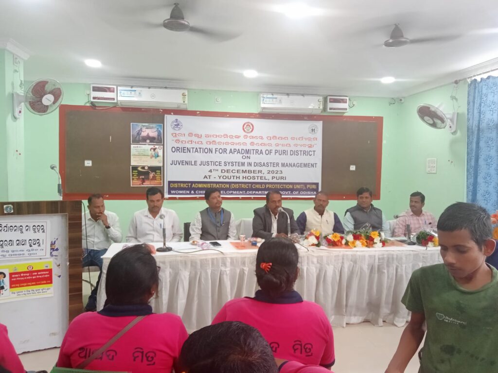 ପୁରୀ ୪/୧୨ ଆପଦମିତ୍ର ମାନେ ପ୍ରାକୃତିକ ବିପର୍ଯ୍ୟୟ ଠାରୁ ଆରମ୍ଭ କରି ରଥଯାତ୍ରା ପର୍ଯ୍ୟନ୍ତ ବିବିଧ କାର୍ଯ୍ୟକ୍ରମ ରେ ଜନସାଧାରଣ ଙ୍କୁ ସହଯୋଗ କରୁଛନ୍ତି।ସେମାନଙ୍କ ମାଧ୍ୟମରେ ଶିଶୁ ମାନଙ୍କ ଶିକ୍ଷା ଓ ସୁରକ୍ଷା କୁ ସୁନିଶ୍ଚିତ କରିବା ସହଜ ହୋଇ ପାରିବ।ତେଣୁ ସେମାନ ଙ୍କୁ ଉପଯୁକ୍ତ ପ୍ରଶିକ୍ଷଣ ମାଧ୍ୟମରେ ଦକ୍ଷତା ବୃଦ୍ଧି କରିବାକୁ ଅତିରିକ୍ତ ଜିଲ୍ଲାପାଳ ପ୍ରଶାସନ ପ୍ରଦୀପ କୁମାର ସାହୁ ପରାମର୍ଶ ଦେଇଛନ୍ତି।ଆଜି ପୂର୍ବାହ୍ନରେ ୟୁଥ ହଷ୍ଟେଲ ସମ୍ମିଳନୀ ଗୃହରେ ଜିଲ୍ଲା ପ୍ରଶାସନ ଶିଶୁ ସୁରକ୍ଷା ୟୁନିଟ ପକ୍ଷରୁ ବିଭିନ୍ନ ବିପର୍ଯ୍ୟୟ ସମୟରେ ଶିଶୁ ମାନଙ୍କୁ ସୁରକ୍ଷା ଓ ସହଯୋଗ ସମ୍ପର୍କରେ ଏକ ପ୍ରଶିକ୍ଷଣ ଶିବିର ଅନୁଷ୍ଠିତ ହୋଇଥିଲା।