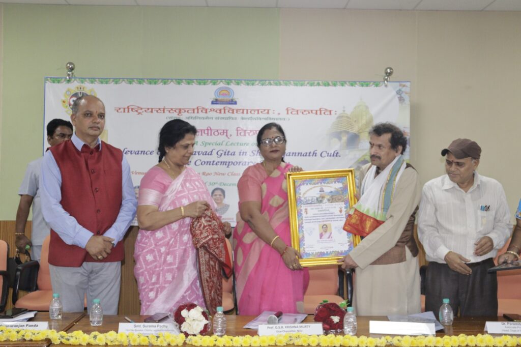 ତିରୁପତି ରାଷ୍ଟ୍ରୀୟ ସଂସ୍କୃତି ବିଶ୍ୱବିଦ୍ୟାଳୟ ପକ୍ଷରୁ ମାନ୍ୟବର ବାଚସ୍ପତିଙ୍କୁ ‘ଉତ୍କଳକମଳା’ ସମ୍ମାନରେ ସମ୍ମାନିତ