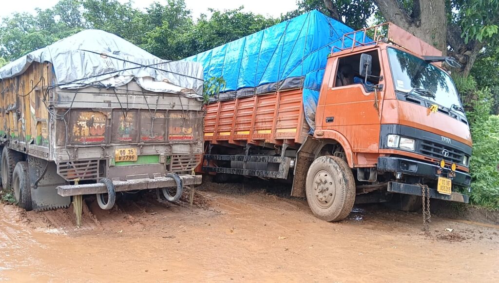 ରାସ୍ତା ମରାମତି ନ ହେବାରୁ ଗଣିଆ – ଦଶପଲ୍ଲା ମୁଖ୍ୟ ରାସ୍ତାରେ ଫସିଗଲା ଟ୍ରକ, ଯାତାୟାତ ଠପ୍