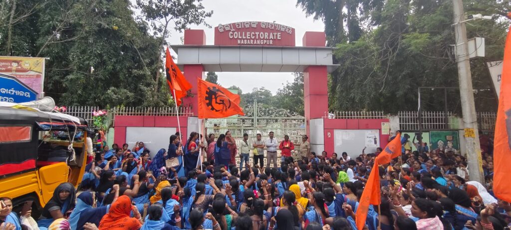 ନବରଙ୍ଗପୁର,: ବାରମ୍ବାର ଅଭିଯୋଗ ପରେ ମଧ୍ୟ କାର୍ଯ୍ୟାନୁଷ୍ଠାନ କରାଯାଉ ନ ଥିବା ବେଳେ ପ୍ରତିଶୃତି ପରେ ପ୍ରତିଶୃତି ଦିଆଯାଉଛି କିନ୍ତୁ କୌଣସି ପଦକ୍ଷେପ ନିଆଯାଉ ନ ଥିବାରୁ ଭାରତୀୟ ମଜଦୁର ସଂଘ ଦ୍ବାରା ପରିଚାଳିତ ଓଡିଶା ରାଜ୍ୟ ଆଶା କର୍ମୀ ସଂଘ ନବରଙ୍ଗପୁରଜିଲ୍ଲା ତରଫରୁ ଆଜି ନବରଙ୍ଗପୁର ପଲିସ ପଡିଆ ଠାରୁ ଏକ ବିଶାଳ ସଭାଯାତ୍ରା ରେ ବାହାରି ଜିଲ୍ଲା ପାଳ ଙ୍କ କାର୍ଯ୍ୟାଳୟ ରେ ପହଞ୍ଚି ଥିଲେ ବିଭିନ୍ନ ପ୍ରକାର ନାରା ବାଜି କରି ବିକ୍ଷୋଭ ପ୍ରଦର୍ଶନ କରିଥିଲେ l ତା 14-10-2025 ରିଖରୁ ଅନିର୍ଦ୍ଧିଷ୍ଟ କାଳ ପର୍ଯ୍ୟନ୍ତ ଜିଲ୍ଲପାଳ ଅଫିସ ଆଗରେ ଧାରଣା ଦେବେ ବୋଲି ପ୍ରକାଶ କରିଛନ୍ତି l ପ୍ରକାଶ ଥାଉ କିଗତ ତା ୩୦.୦୮.୨୦୨୫ ରିଖରେ ଘଟିଥିବା ଉମରକୋଟ ବ୍ଲକ, ବଡବାସୀନି ଗ୍ରାମର ଆଶାକର୍ମୀ ଦମୟନ୍ତି ଭତରାଙ୍କ ଉମରକୋଟ ସ୍ବାସ୍ଥ୍ୟ କେନ୍ଦ୍ରର ଡ଼ାକ୍ତର ସାଗରିକା ସ୍ବାଇଁଙ୍କ ଅବହେଳା ଯୋଗୁଁ ନବରଙ୍ଗପୁର ମୁଖ୍ୟ ଚିକିତ୍ସାଳୟକୁ ରେଫେର ହୋଇ ନବରଙ୍ଗପୁର ଆସୁଥିବା ସମୟରେ ଡାବୁଗାଁ ରାସ୍ତା ପାଖରେ ଗର୍ଭରେ ଥିବା ଛୁଆ ଓ ମାଙ୍କରମୃତ୍ୟୁ ହୋଇଥିଲା । ଏହାକୁ ନେଇ ତା ୦୧.୦୯.୨୦୨୫ ରିଖ ସମୋବାର ଦିନ ଉମରକୋଟ ସ୍ଵାସ୍ଥ୍ୟକେନ୍ଦ୍ର ଛକରେ ଦମୟନ୍ତୀ ଭତରାଙ୍କ ଶବକୁ ରଖି ଆନ୍ଦୋଳନ କରାଯାଇଥିଲା । ସେହି ସମୟରେ ମ୍ୟୁନିସିପାଲିଟିର କାର୍ଯ୍ୟନିର୍ବାହୀ ଅଧିକାରୀ ଓ ଅତିରିକ୍ତ ତହସିଲଦାର ଆସି ଲିଖିତ ଆକାର ରେ ୦୮.୦୯.୨୦୨୫ରିଖ ସୁଧା କାର୍ଯ୍ୟାନୁଷ୍ଠାନ କରିବା ପାଇଁପ୍ରତିଶ୍ରୁତି ଦେଇଥିଲେ। କିନ୍ତୁ ପ୍ରତିଶ୍ରୁତି ମୁତାବକ କୌଣସି ପ୍ରକାର କାର୍ଯ୍ୟାନୁଷ୍ଠାନ ଗ୍ରହଣ କରାନଯାଇଥିବାରୁ ଗତ ତା ୦୩.୦୯. ୨୦୨୫ ରିଖରେ ଆଶାକର୍ମୀ ସଂଘ ତରଫରୁ ନବରଙ୍ଗପୁର ଜିଲାପାଳଙ୍କ ଜରିଆରେ ମୁଖ୍ୟମନ୍ତ୍ରୀ ଓ ସ୍ୱାସ୍ଥ୍ୟ ମନ୍ତ୍ରୀଙ୍କୁ ଦାବିପତ୍ର ପ୍ରଦାନ କରାଯାଇଥିଲା। ପୁଣି ତା୧୨.୦୯.୨୦୨୫ ରିଖରେ ଜିଲ୍ଲା ମୁଖ୍ୟ ଚିକିତ୍ସା ଅଧିକାରୀଙ୍କ କାର୍ଯ୍ୟାଳୟ ଘେରାଉ କରି ପାଞ୍ଚ ଦଫା ଦାବୀ ପତ୍ର ପ୍ରଦାନ କରାଯାଇଥିଲା ଓ ଆସନ୍ତା ୦୫.୧୦.୨୦୨୫ରିଖ ସୁଧା କୌଣସି ପ୍ରକାର କାର୍ଯ୍ୟାନୁଷ୍ଠାନ ଗ୍ରହଣ କରାନଗଲେ କାର୍ଯ୍ୟବନ୍ଦ ଆନ୍ଦୋଳନକରିବାକୁ ମୌଖିକ ଭାବେ କୁହା ଯାଇଥିଲା।