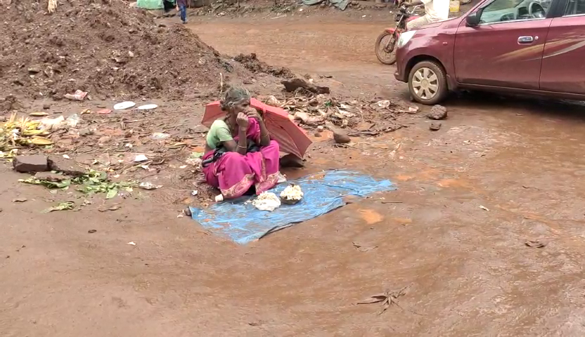 କାଦୁଅ ପଚ ପଚରେ ଅସହାୟ ପରିବା ବିକ୍ରେତା