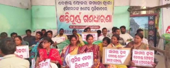 ବେଦାନ୍ତ ଫେକର କମ୍ପାନୀ ଦ୍ବାରା ଶ୍ରମିକ ମାନଙ୍କ ଛଟେଇ ପ୍ରତିବାଦରେ ୪ ଦିନ ହେବ ଧାରଣାରେ ବସିଛନ୍ତି ଶ୍ରମିକ ସଂଘ