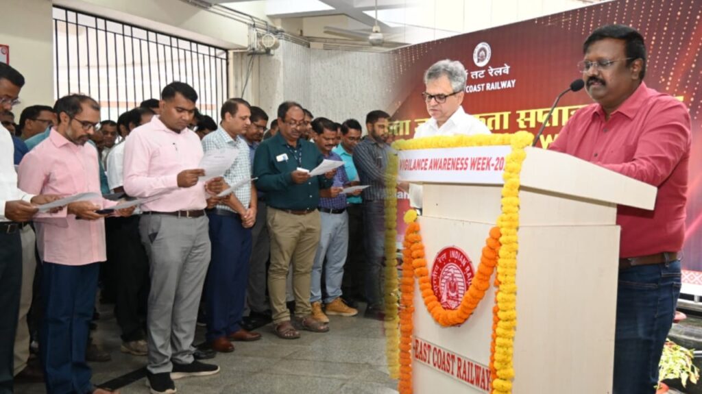 ସତର୍କତା (ଭିଜିଲାନ୍ସ) ସଚେତନତା ସପ୍ତାହ ପାଳନର ପ୍ରଥମ ଦିବସରେ ପୂର୍ବତଟ ରେଳପଥ କର୍ମଚାରୀମାନେ ଅଖଣ୍ଡତା ଓ ସ୍ୱଚ୍ଛତା ପାଇଁ ଶପଥ ନେଲେ :“ସତର୍କତା: ଆମର ମିଳିତ ଦାୟିତ୍ୱ”, ଚଳିତ ବର୍ଷର ସତର୍କତା ସଚେତନତା ସପ୍ତାହ ପାଳନର ମୂଳମନ୍ତ୍ର |ଭୁବନେଶ୍ୱର, ଅକ୍ଟୋବର 27, 2024 -ସତ୍ୟ ନିଷ୍ଠାର ସଂସ୍କୃତିରୁ ରାଷ୍ଟ୍ରର ସମୃଦ୍ଧିକୁ ପ୍ରୋତ୍ସାହିତ କରିବା ପାଇଁ ଏକ ଗୁରୁତ୍ୱପୂର୍ଣ୍ଣ ପଦକ୍ଷେପରେ ପୂର୍ବତଟ ରେଳପଥର ଅତିରିକ୍ତ ମହାପ୍ରବନ୍ଧକ ଶ୍ରୀ ବି.ଏସ୍.କେ. ରାଜକୁମାର ଆଜି ପୂର୍ବାହ୍ନରେ ରେଳପଥର ମୁଖ୍ୟାଳୟରେ ରେଳ କର୍ମଚାରୀ ଏବଂ ଅଧିକାରୀମାନଙ୍କୁ ସତ୍ୟନିଷ୍ଠ ଓ ଅଖଣ୍ଡତାର ଶପଥ ଗ୍ରହଣ କରାଇଛନ୍ତି କରିଥିଲେ | ଏହି ସଚେତନତା ସପ୍ତାହ ରେଳବାଇ କାର୍ଯ୍ୟର ସମସ୍ତ କ୍ଷେତ୍ରରେ ସ୍ୱଚ୍ଛତା ଏବଂ ନୈତିକ ଆଚରଣକୁ ଲକ୍ଷ୍ୟ କରି ଭିଜିଲାନ୍ସ ସଚେତନତା ସପ୍ତାହ 2025 ର ପ୍ରାରମ୍ଭକୁ ସୂଚିତ କରୁଛି |ସତର୍କତା ସଚେତନତା ଶପଥ ଗ୍ରହଣ ସମାରୋହରେ ରେଳ କର୍ମଚାରୀମାନେ ସେମାନଙ୍କର ବୃତ୍ତିଗତ ତଥା ବ୍ୟକ୍ତିଗତ ଜୀବନର ପ୍ରତ୍ୟେକ କ୍ଷେତ୍ରରେ ସମ୍ଭାବ୍ୟତା ଏବଂ ଆଇନ ଶୃଙ୍ଖଳା ରକ୍ଷା କରିବାକୁ ପ୍ରତିଶୃତି ଦେଇଥିଲେ | ଏହି ଶପଥଗ୍ରହଣ ଉତ୍ସବରେ ଲାଞ୍ଚ କାରବାର ନକରିବା, ସଚ୍ଚୋଟତା ସହିତ ସମସ୍ତ କାର୍ଯ୍ୟ କରିବା, ଜନସାଧାରଣଙ୍କ ସ୍ୱାର୍ଥରେ କାର୍ଯ୍ୟ କରିବା ଏବଂ ଅଖଣ୍ଡତା ପ୍ରଦର୍ଶନ କରିବାରେ ଉଦାହରଣ ଦେଇ ଆଗେଇ ନେବା ଉପରେ ଗୁରୁତ୍ୱାରୋପ କରାଯାଇଥିଲା | କର୍ମଚାରୀମାନଙ୍କୁ ମଧ୍ୟ ଉପଯୁକ୍ତ ଅଧିକାରୀଙ୍କୁ ଦୁର୍ନୀତି ଘଟଣା ଜଣାଇବାକୁ ଉତ୍ସାହିତ କରାଯାଇଥିଲା | ସତର୍କତା ସଚେତନତା ସମାବେଶକୁ ସମ୍ବୋଧିତ କରି ଶ୍ରୀ ରାଜକୁମାର ଦର୍ଶାଇଛନ୍ତି ଯେ ଦେଶର ଅର୍ଥନୈତିକ, ରାଜନୈତିକ ଏବଂ ସାମାଜିକ ପ୍ରଗତି ପାଇଁ ଦୁର୍ନୀତି ଏକ ଗୁରୁତ୍ୱପୂର୍ଣ୍ଣ ପ୍ରତିବନ୍ଧକ ହୋଇ ରହିଛି | ଦୁର୍ନୀତିର ପ୍ରଭାବଶାଳୀ ମୁକାବିଲା ପାଇଁ ସରକାରୀ ଏବଂ ବେସରକାରୀ କ୍ଷେତ୍ର ତଥା ନାଗରିକଙ୍କ ସମେତ ବିଭିନ୍ନ ହିତାଧିକାରୀଙ୍କ ମଧ୍ୟରେ ସହଯୋଗର ଆବଶ୍ୟକତା ଉପରେ ସେ ଗୁରୁତ୍ୱାରୋପ କରିଥିଲେ | ସେ କହିଛନ୍ତି ଯେ ପ୍ରତ୍ୟେକ ନାଗରିକ ସର୍ବୋଚ୍ଚ ସଚ୍ଚୋଟତା ଏବଂ ଅଖଣ୍ଡତା ପ୍ରତି ପ୍ରତିବଦ୍ଧ ହେବା ଆବଶ୍ୟକ, ଯାହାଦ୍ୱାରା ଦୁର୍ନୀତି ବିରୋଧରେ ସାମୂହିକ ସଂଗ୍ରାମକୁ ମୁକାବିଲା କରାଯାଇ ହେବ | ଅକ୍ଟୋବର 27 ରୁ 2 ନଭେମ୍ବର, 2025 ପର୍ଯ୍ୟନ୍ତ ପାଳନ କରାଯାଉଥିବା ଭିଜିଲାନ୍ସ ସଚେତନତା ସପ୍ତାହରେ ରେଳ କର୍ମଚାରୀ, ଜନସାଧାରଣ ଏବଂ ରେଳ ବ୍ୟବହାରକାରୀଙ୍କୁ ଅଖଣ୍ଡତାର ଗୁରୁତ୍ୱ ବିଷୟରେ ସଚେତନତା କରାଇବା ଉଦ୍ଦେଶ୍ୟରେ ଏକ ବ୍ୟାପକ ସଚେତନତା ଅଭିଯାନ ଆୟୋଜନ କରାଯାଇଅଛି | ସତର୍କତା ସଚେତନତା ସପ୍ତାହରେ ଆୟୋଜନ କରାଯାଉଥିବା କାର୍ଯ୍ୟକଳାପ ମାନଙ୍କ ସେମିନାର ଆୟୋଜନ, ସର୍ବସାଧାରଣ କେନ୍ଦ୍ରରେ ବ୍ୟାନର ଏବଂ ପୋଷ୍ଟର ଲଗାଇ ସଚେତନତା ସୃଷ୍ଟି କରାଇବା, ପଥପ୍ରାନ୍ତ ନାଟକ ମାଧ୍ୟମରେ ସଚେତନତା, ରେଳ କର୍ମଚାରୀ ଏବଂ ଉପଭୋକ୍ତାମାନଙ୍କ ମଧ୍ୟରେ ସଚେତନତା ବୃଦ୍ଧି ପାଇଁ ବ୍ୟାପକ ପରିକଳ୍ପନା କରାଯାଇଛି |ଏହି ଶପଥ ଗ୍ରହଣ ସମାରୋହରେ ପୂର୍ବତଟ ରେଳପଥର ମୁଖ୍ୟ ଭିଜିଲାନ୍ସ (ସତର୍କତା) ଅଧିକାରୀ ତଥା ବରିଷ୍ଠ ଉପ ମହାପ୍ରବନ୍ଧକ ଶ୍ରୀ ଅରୁଣ କୁମାର ଚତୁର୍ବେଦୀ ସମେତ ରେଳପଥର ସମସ୍ତ ବିଭାଗର ପ୍ରମୁଖ ଅଧିକାରୀ, ବରିଷ୍ଠ ଅଧିକା