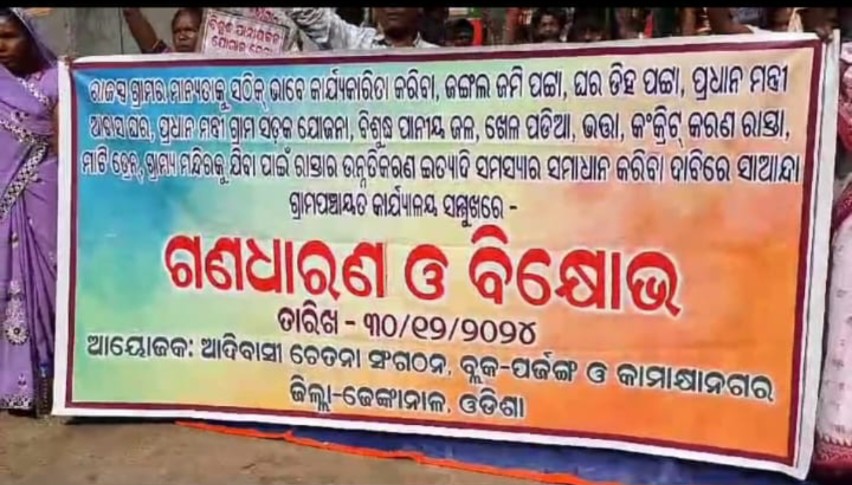 ମୌଳିକ ଅଧିକାର ପାଇଁ ପଞ୍ଚାୟତ କାର୍ଯ୍ୟାଳୟରେ ଗ୍ରାମବାସୀଙ୍କ ଗଣଧାରଣା ଓ ବିକ୍ଷୋଭ ।