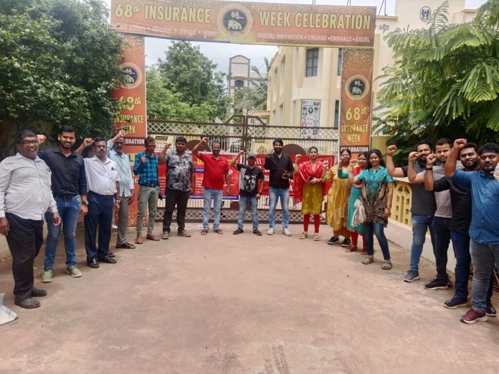 ଆଜି ଦେଶବ୍ୟାପୀ ମିଳିତ ଭାବରେ ମଜଦୂର ସଂଗଠନ ମାନେ ଦିନିକିଆ ଧର୍ମଘଟ ର ଡାକରା ଦେଇଛନ୍ତି। ଅଖିଳ ଭାରତୀୟ ବୀମା କର୍ମଚାରୀ ସଂଗଠନ ର ଆହ୍ବାନ ରେ, ଭୁବନେଶ୍ୱର ଅନୁକୁଲ୍ୟ ରେ ଖୋର୍ଦ୍ଧା ସଂଗଠନ ର 30 ଜଣ କର୍ମଚାରୀ ସମ୍ପାଦକ ସଞ୍ଜୟ କୁମାର ସାମଲ, ସଭାପତି ରୁଦ୍ରନାରାୟଣ ଧଳସମଣ୍ଟ ଏବଂ କୋଷାଧ୍ୟକ୍ଷ ପ୍ରମୋଡ଼ିନି ଜେନା ଙ୍କ ନେତୃତ୍ୱ ରେ ଅନେକ ଦଫା ଦାବି ନେଇ ଏ ଦିନିକିଆ ଧର୍ମଘଟ ରେ ସାମିଲ ହୋଇଛନ୍ତି ଏବଂ ମିଳିତ ଭାବରେ ଧର୍ମଘଟ କୁ ସଫଳ କରିଛନ୍ତି। ଦିନ ତମାମ ବନ୍ଦ ଡାକରା, ଶ୍ରମିକ ଏକତା ର ଦୁଦୁମ୍ଭି ପ୍ରତିଧ୍ଵନି ହୋଇ ଥିଲା।ସଂଖେପ ରେ ଦାବି ଗୁଡ଼ିକ ହେଲାବିରୋଧ କରୁ 1।ବୀମା କ୍ଷେତ୍ର 100% ବିଦେଶୀ ପୁଞ୍ଜିନିବେଶ ।2 ବୀମା ଆଇନ ର ସଂଶୋଧନ 20243। ଭାରତୀୟ ଜୀବନ ବିମା ରୁ ପୁଞ୍ଜି ପ୍ରତ୍ୟାହାର4। ଅସ୍ଥାୟୀ ନିଯୁକ୍ତି 5। ନୂତନ ନିଯୁକ୍ତି6। ନୂତନ ପେନସନ ନୁହଁ 7। ପୁରାତନ ପେନସନ ଲାଗୁ କରାଯାଉ8।ଶ୍ରମ କୋଡ କୁ ବାତିଲ କରାଯାଉ