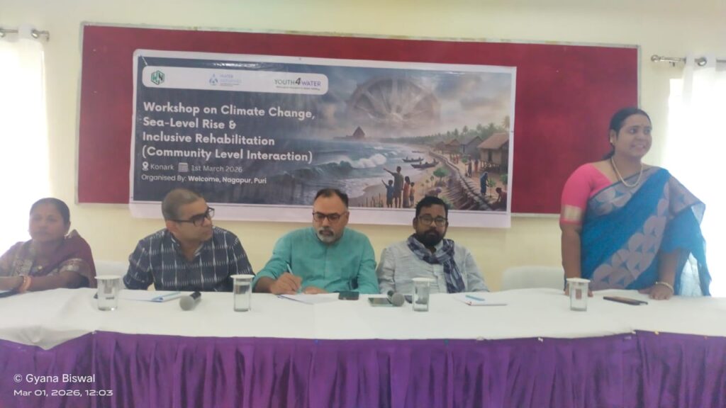 କୋଣାର୍କ – କୋଣାର୍କ ଯାତ୍ରୀ ନିବାସ ସମ୍ମିଳନୀ କକ୍ଷରେ ୟୁଥ୍ ଫର୍ ୱାଟର ଓ ୱାଟର ଇନିସିଏଟିଭ ଭୁବନେଶ୍ଵର ଆନୁକୁଲ୍ୟରେ ୱେଲକମ୍ ଅନୁଷ୍ଠାନ ପକ୍ଷରୁ ଜଳବାୟୁ ପରିବର୍ତ୍ତନ ନେଇ କର୍ମଶାଳା ଅନୁଷ୍ଠିତ ହୋଇଯାଇଛି। ୟୁଥ୍ ଫର୍ ୱାଟର ଓ ୱାଟର ଇନିସିଏଟିଭ ଅଧକ୍ଷ ରଞ୍ଜନ କୁମାର ପଣ୍ଡାଙ୍କ ତତ୍ତ୍ଵାବଧାନରେ ଆୟୋଜିତ ଏହି କାର୍ଯ୍ୟକ୍ରମରେ ମୂଖ୍ୟ ବକ୍ତା ଭାବେ ପରିବେଶପ୍ରେମି ସାହା ଅନସାରୀ, ମହିଳା ସଂଗଠିକା ପୂର୍ବତନ ସରପଞ୍ଚ ପ୍ରଜ୍ଞା ପାରମିତା ନାୟକ, ସାମାଜିକ କର୍ମୀ ମୁକ୍ତିକେଶ ଭରଦ୍ୱାଜ, ରେଣୁବାଳା ନାୟକ ପ୍ରମୁଖ ଯୋଗ ଦେଇଥିଲେ। ଉପକୂଳରେ ଜଳବାୟୁ ପରିବର୍ତ୍ତନ, ସାମୁଦ୍ରିକ ଜୁଆର ଉଥାନ, ସୁରକ୍ଷା ଓ ଥଇଥାନ ଆଦି ନେଇ କର୍ମଶାଳା ଆୟୋଜିତ ହୋଇଥିଲା।