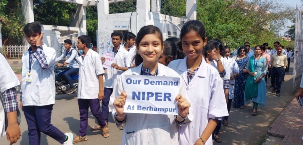 ବ୍ରହ୍ମପୁର – ଗଞ୍ଜାମ ଜିଲ୍ଲା ବ୍ରହ୍ମପୁର ମହାନଗର ଉପକଣ୍ଠରେ *ନାଇପର(NIPER) ପ୍ରତିଷ୍ଠା ଦାବିରେ ଆଜି ବିଶ୍ଵ ସ୍ବାସ୍ଥ୍ୟ ଦିବସରେ* ଦକ୍ଷିଣ ଓଡିଶା ଫାର୍ମାସିଷ୍ଟ ସଂଘ (SOPA) ତରଫରୁ ବ୍ରହ୍ମପୁର ବଡ଼ ଡାକ୍ତରଖାନା ପରିସରରୁ ଦକ୍ଷିଣ ଓଡିଶା ଫାର୍ମାସିଷ୍ଟ ସଂଘ ସଭାପତି ବିଜୟ କୁମାର ସ୍ବାଇଁଙ୍କ ନେତୃତ୍ୱରେ ଏକ ବିରାଟ ରାଲି ବାହାରି ଦକ୍ଷିଣାଞ୍ଚଳ ରାଜସ୍ବ କମିଶନରଙ୍କ ବାସଭବନରେ ପ୍ରଧାନମନ୍ତ୍ରୀ, କେନ୍ଦ୍ର ସ୍ୱାସ୍ଥ୍ୟ ମନ୍ତ୍ରୀ, ସାର ଓ ରସାୟନ ମନ୍ତ୍ରୀ ଓ ମୁଖ୍ୟମନ୍ତ୍ରୀଙ୍କ ଉଦ୍ଦେଶ୍ୟରେ ଦାବିପତ୍ର ପ୍ରଦାନ କରାଯାଇଛି l ଏହି ରାଲି ଓ ଦାବିପତ୍ର ପ୍ରଦାନ ସମୟରେ ଭାରତୀୟ ଫାର୍ମାସୀ ଗ୍ରlଜୁଏଟ୍ ସଂଘ(IPGA), ଗଞ୍ଜମ ଔଷଧ ବ୍ୟବସାୟୀ ସଂଘ (GPCDA), ଭାରତିୟ ଫାର୍ମାସିଟିକଲ ଶିକ୍ଷକ ସଙ୍ଘ (APTI), ହୋମସ୍ ଚାରିଟେବୁଲ ଓ ଏଜୁକେଶନଲ ଟ୍ରଷ୍ଟ(Homes-CET), ସିପିଏସ ମହୁଡ଼ା, ଓମ୍ ସାଇ ଫାର୍ମାସୀ କଲେଜ, ରୟାଲ ଫାର୍ମାସୀ କଲେଜ, ରୋଲାଣ୍ଡ ଫାର୍ମାସୀ କଲେଜ ଛାତ୍ର ଛାତ୍ରୀ ସମେତ ବହୁ ଫାର୍ମାସିଷ୍ଟ ଓ କର୍ମକର୍ତା ଯୋଗ ଦେଇଥିଲେ l ପ୍ରକାଶଯୋଗ୍ୟ ବ୍ରହ୍ମପୁର ଉପକଣ୍ଠରେ ୧୯୭୯ ମସିହାରେ ଫାର୍ମାସୀ କଲେଜ ପ୍ରତିଷ୍ଠା ହୋଇଥିବା ବେଳେ ବର୍ତମାନ ବ୍ରହ୍ମପୁରରେ ୫ଟି ଫାର୍ମାସୀ କଲେଜ୍ ଅଛି l